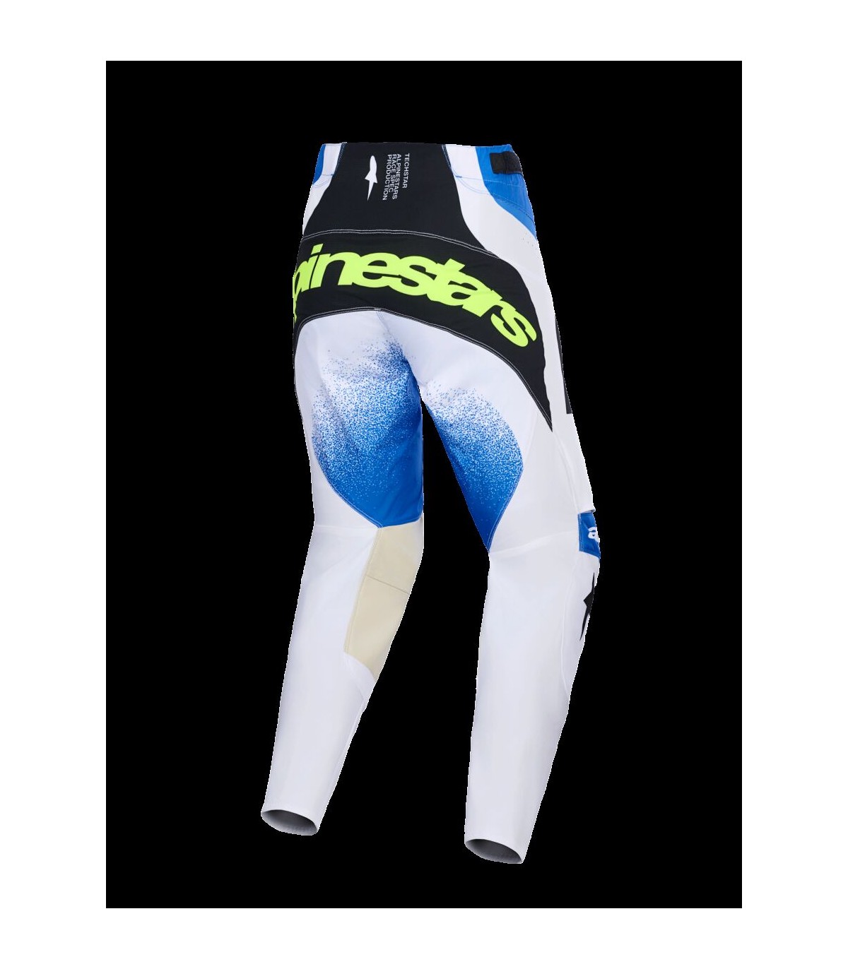 Techstar Knif PantsThe Techstar Knif Pants feature a durable 600D coated polyfabric and an advanced blend of stretch ripstop fabric for enhanced stretchability and durability.Ergonomic cut designed for performance featuring engineered racing cut with optimized multi-panel pattern delivering a second skin feel and premium freedom of movement and mobility.Performance-engineered single-layer construction and linerless design offers enhanced wearability, comfort and lighter weight while also providing effortless on and off, even with knee braces or guards.Durable 4-way stretch on the yoke, thighs, and upper knees.Seat and knees have enhanced durability due to reinforced materials.Innovative revised Babel knee gusset construction for optimal flexibility, comfort and added ventilation.Secure and quick SX2 auto-lock magnetic buckle.Strategically positioned laser perforations for additional airflow and optimum ventilation.Goat leather inner knees for premium feel and durability. Elasticated waist with silicone inner waistline keeps the pants in position.Covered zippered fly for durability.Perfect compatibility with Alpinestars' MX jerseys.