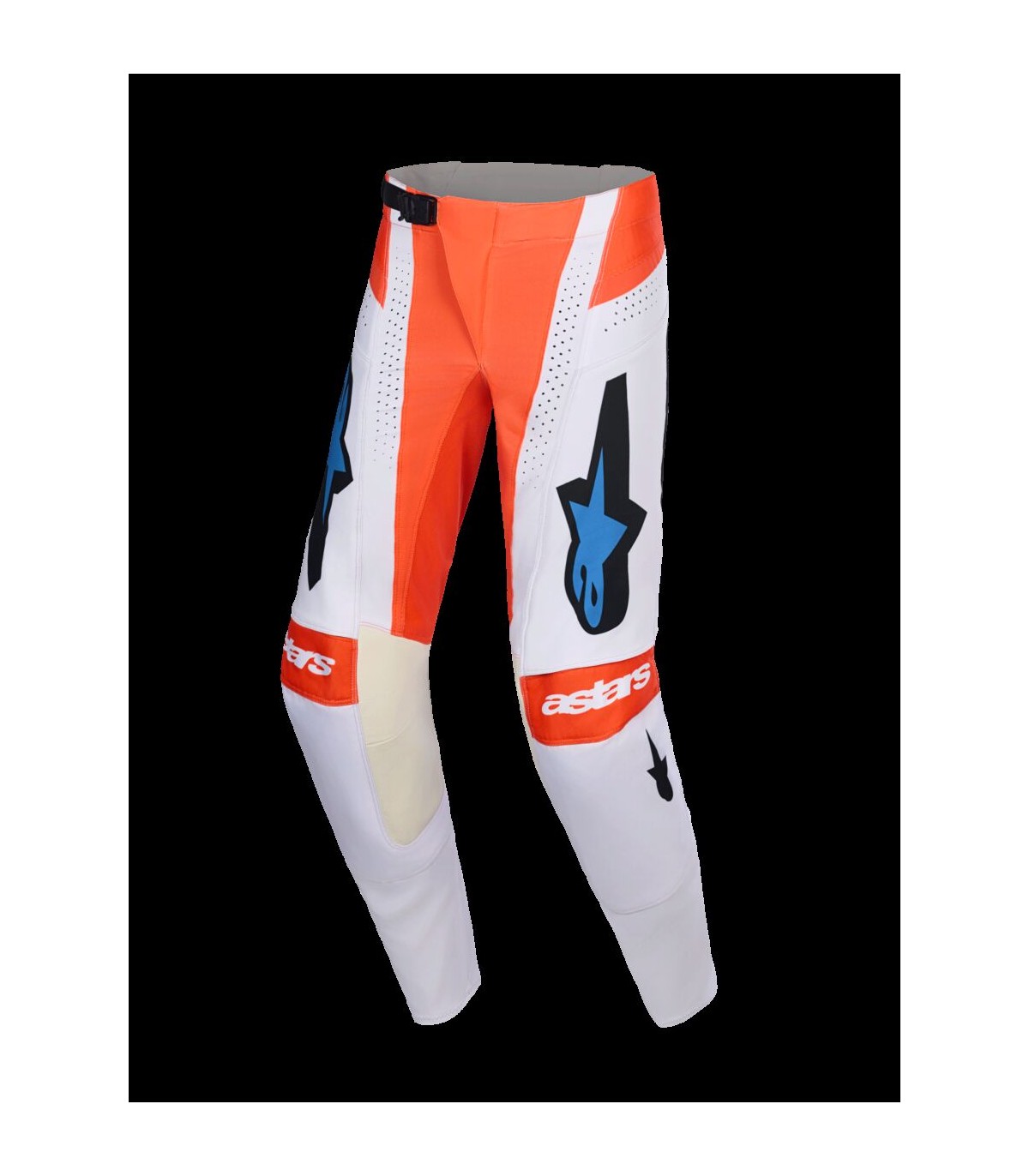 Techstar Knif PantsThe Techstar Knif Pants feature a durable 600D coated polyfabric and an advanced blend of stretch ripstop fabric for enhanced stretchability and durability.Ergonomic cut designed for performance featuring engineered racing cut with optimized multi-panel pattern delivering a second skin feel and premium freedom of movement and mobility.Performance-engineered single-layer construction and linerless design offers enhanced wearability, comfort and lighter weight while also providing effortless on and off, even with knee braces or guards.Durable 4-way stretch on the yoke, thighs, and upper knees.Seat and knees have enhanced durability due to reinforced materials.Innovative revised Babel knee gusset construction for optimal flexibility, comfort and added ventilation.Secure and quick SX2 auto-lock magnetic buckle.Strategically positioned laser perforations for additional airflow and optimum ventilation.Goat leather inner knees for premium feel and durability. Elasticated waist with silicone inner waistline keeps the pants in position.Covered zippered fly for durability.Perfect compatibility with Alpinestars' MX jerseys.