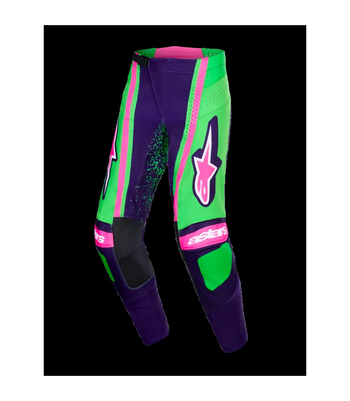 Techstar Nomur PantsThe Techstar Nomur Pants feature a durable 600D coated polyfabric and an advanced blend of stretch ripstop fabric for enhanced stretchability and durability.Ergonomic cut designed for performance featuring engineered racing cut with optimized multi-panel pattern delivering a second skin feel and premium freedom of movement and mobility.Performance-engineered single-layer construction and linerless design offers enhanced wearability, comfort and lighter weight while also providing effortless on and off, even with knee braces or guards.Durable 4-way stretch on the yoke, thighs, and upper knees.Seat and knees have enhanced durability due to reinforced materials.Innovative revised Babel knee gusset construction for optimal flexibility, comfort and added ventilation.Secure and quick SX2 auto-lock magnetic buckle.Strategically positioned laser perforations for additional airflow and optimum ventilation.Goat leather inner knees for premium feel and durability. Elasticated waist with silicone inner waistline keeps the pants in position.Covered zippered fly for durability.Perfect compatibility with Alpinestars' MX jerseys.