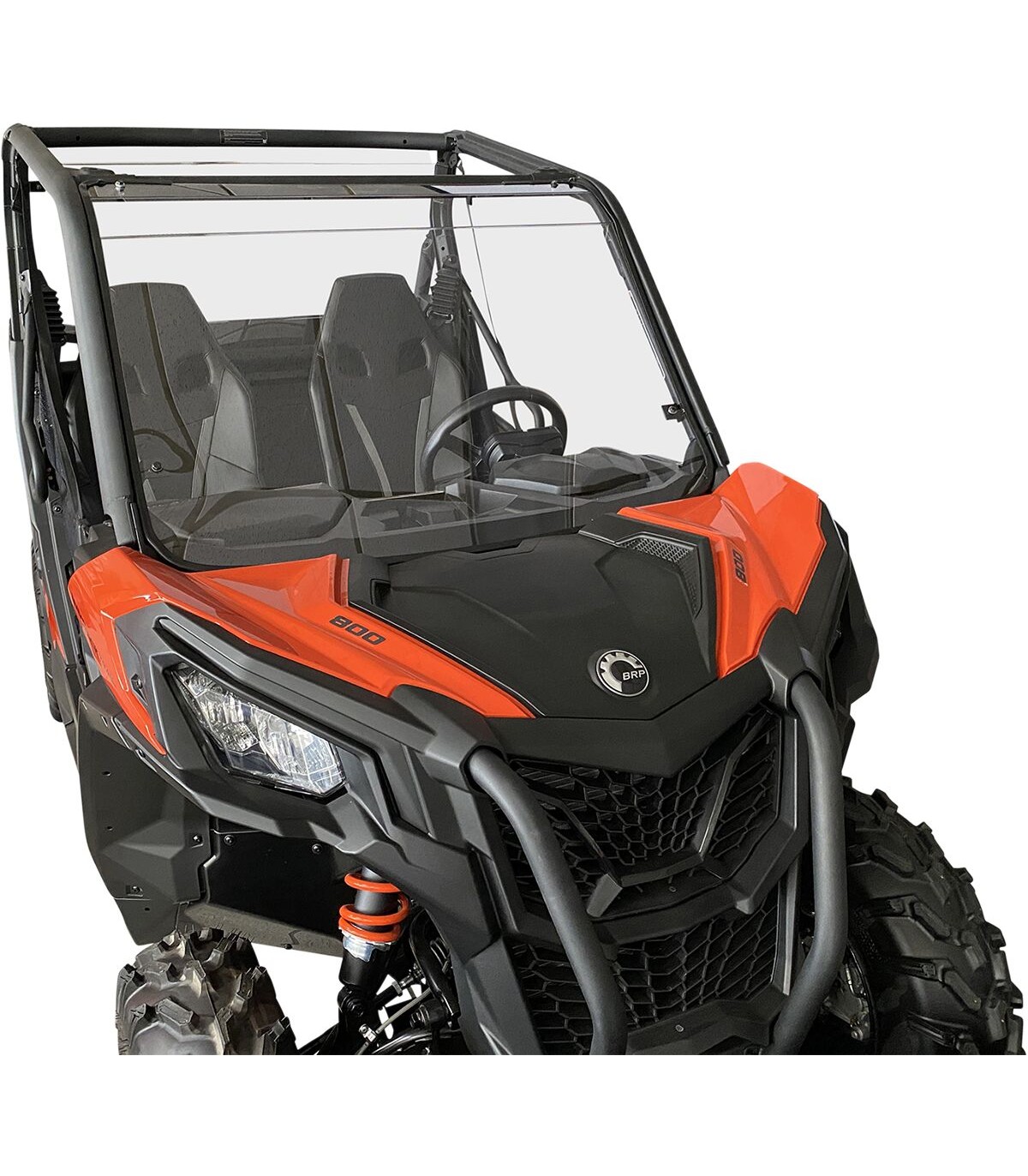 Pare-brise intégralOffre une protection contre les élémentsEn polycarbonate transparent épais de 0,177"Fixation à l'arceau à l'aide de sangles en acier inoxydable recouvertes de caoutchoucAvec un joint en bas du pare-brise qui offre une protection contre les élémentsFabrication aux États-Unis.Non compatible avec tous les toits
