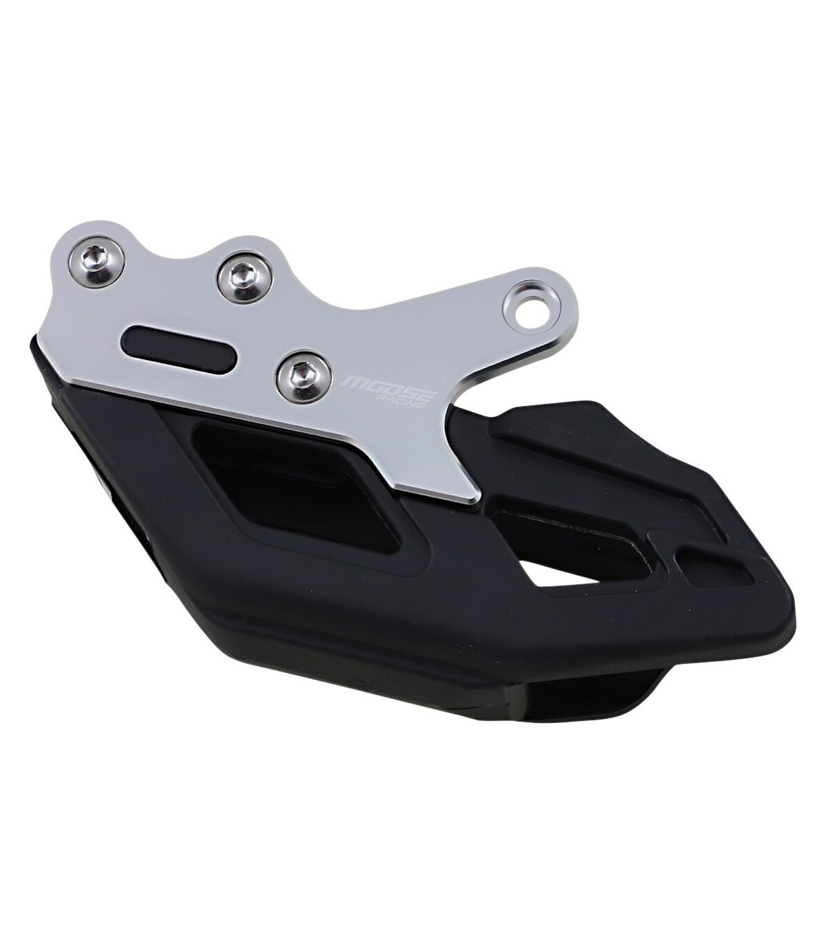 Guide-chaîne coloré MR-1 ALLe corps du guide-chaîne est en aluminium 6061 T6 pour plus de résistance et de durabilitéLe bloque-chaîne est fabriqué à partir de matériaux TPU à forte densité pour une grande résistance aux impacts, à l’abrasion et à l’usureFinitions anodisées de haute qualité pour prévenir la décoloration en cas d’exposition aux UVLe design 3D permet d’éviter l’accumulation de boue et de particules responsables du déraillement de la chaîneKit de montage inclus