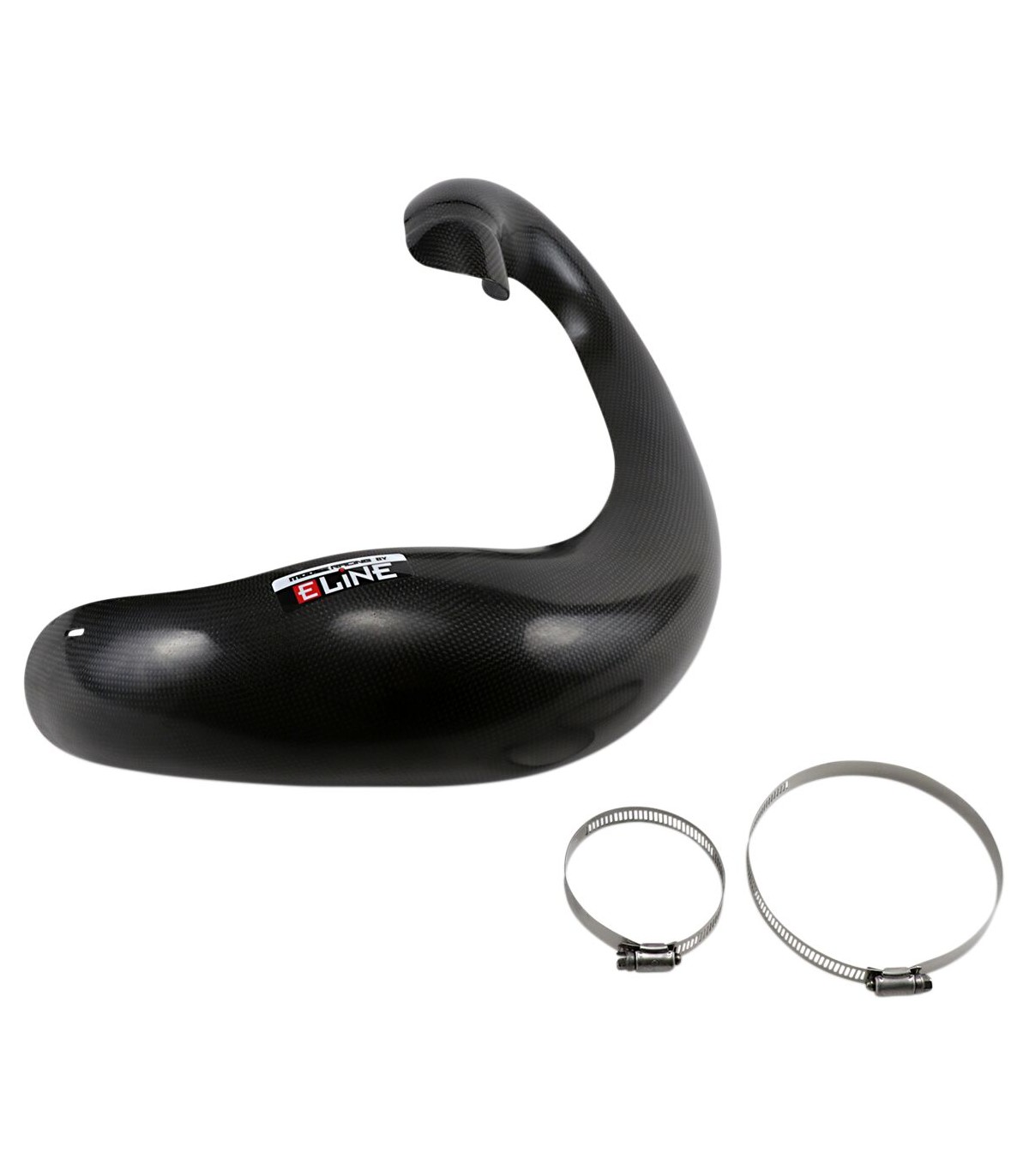 Protection de pot d’échappement E Line pour 2 tempsMoulage sur mesure pour une adaptation parfaite à chaque foisLa fibre de carbone, le matériau composite antibalistique, la fibre de verre et les résines haute température garantissent une protection exceptionnelleLe composite léger a une résistance à la tension 75% plus élevée que l'aluminiumProtection des pots d’échappement contre les bosses qui diminuent la puissance et augmentation de la puissance grâce à une température des flux de gaz plus élevée
