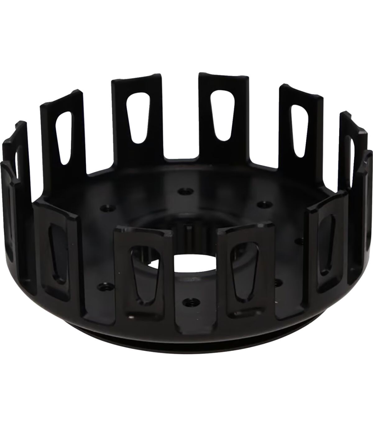 Clutch BasketPrecision machined from heat treated aircraft Billet 7075-T6 aluminum alloy to O.E. precision standardsEach kit comes with the necessary hardware to make installation a snapDesigned to maximize strength through “feature aligned grain flow” and utilizes as-forged features that can only be produced using our precision processSophisticated hard-anodising guarantees extended life under severest racing conditions and produces an ultra tough abrasive resistant surface and ensures a long life of smooth clutch operation through the elimination of wear on the sides of the clutch basket tabsSpecial added Teflon coating creates a near frictionless surface for the clutch plate tabs to glide uponComes with pre-applied thread locker fasteners and an inbus tool