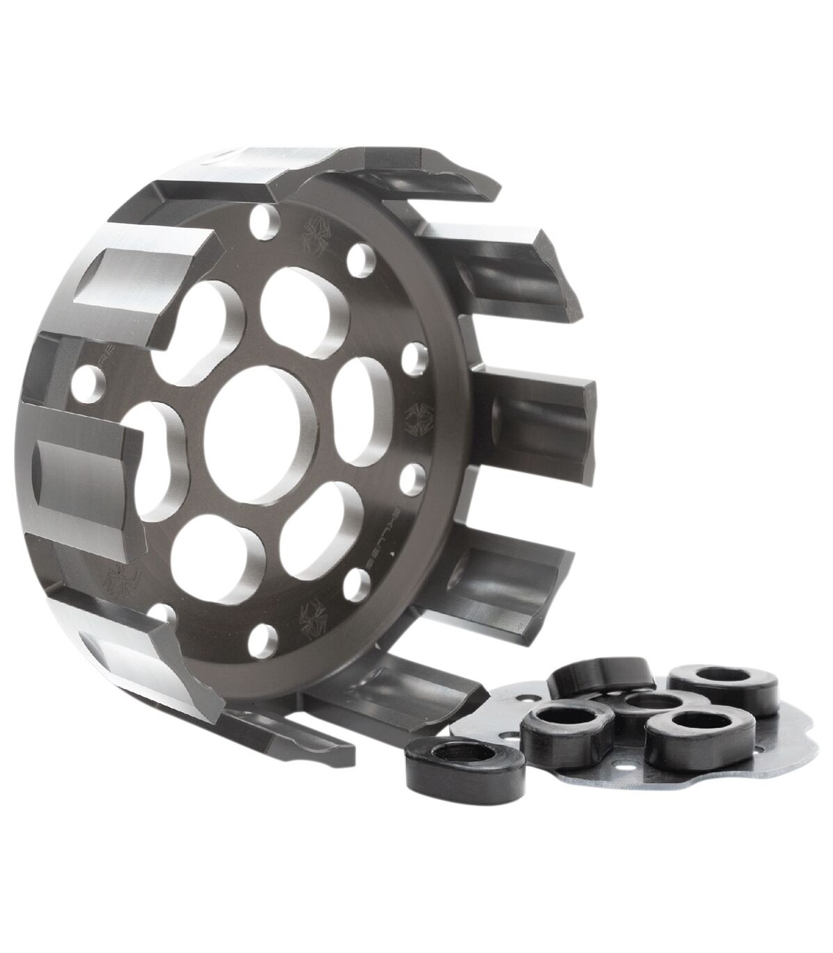 Cloche d'embrayageEn aluminium taillé dans la masse et anodisé dur pour une meilleure modulation de l’embrayageDurabilité extrême pour résister aux encoches et prolonger la durée de vie de l'embrayageLes silent blocs de rechange exclusifs protègent votre transmission des dommages, même dans les conditions les plus extrêmesDes tolérances étroitement contrôlées garantissent un bon fonctionnement, moins de traînée et un bruit réduit de l'embrayageLa cloche d’embrayage est l’armature de tout votre système d’embrayageL’usinage CNC de précision associé à l’ingénierie innovante de classe internationale permet aux cloches d’embrayage Rekluse de protéger vos composants internes vitaux, pour une durée de vie prolongéeFabriqué aux États-Unis.Original Equipment clutch basket dampers must be reused.