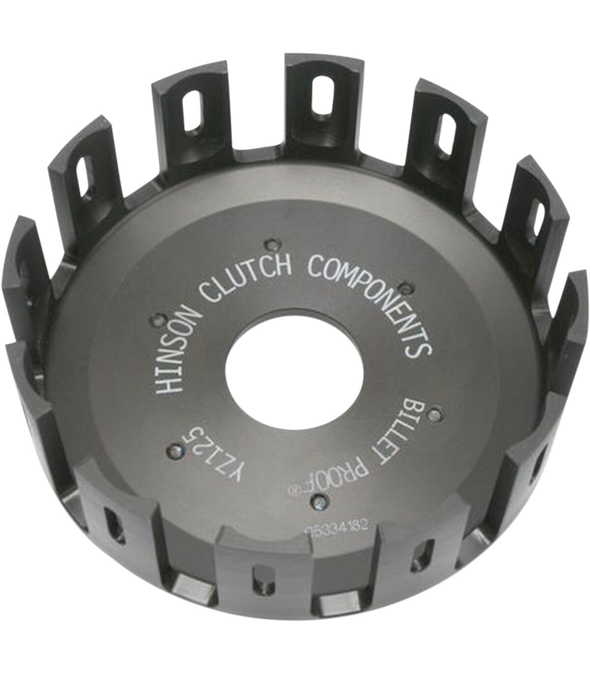 Cloche d'embrayage BilletproofAmélioration des performances et de la durée de vie de l'embrayageTests réalisés par les équipes Honda, Suzuki, Kawasaki, JGR Yamaha et KTMUsinage à partir d'aluminium T6 taillé dans la masse et enduction renforcée pour une résistance à l'usure cinq fois plus élevéeFacilitent l'utilisation de l'embrayage sur la plupart des machinesToutes les cloches d'embrayage sont dotées de vis type à bouton pour permettre une fixation aux clips d'origineFabrication aux États-Unis