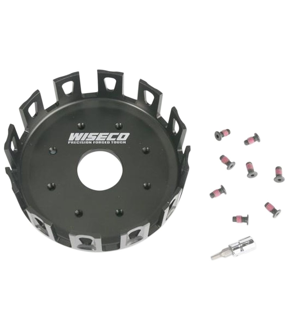 Cloche d'embrayage forgée avec précisionForgé à partir d'un alliage en aluminium léger de qualité aéronautique ; l'usinage CNC garantit que chaque cloche d'embrayage est identique à la prochaineLes rainures qui permettent de gagner du poids à l'extérieur de l'embrayage réduisent la masse rotationnelle, permettent au moteur de changer de régime plus rapidementLes grands orifices d'huile améliorent la lubrification et réduisent l'accumulation de la chaleurLe revêtement PTFE permet une surface pratiquement sans frictionAvec fixations complètes et frein filet pré-appliqué
