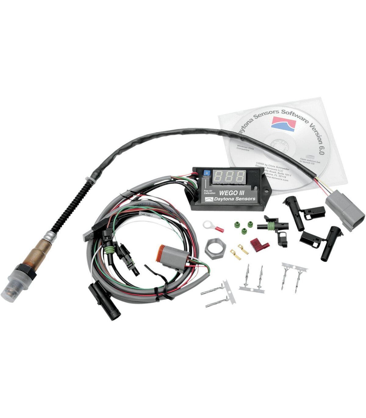 Système de surveillance d’AFR (ratio air/essence) à large bande Wego IIIVendu dans un système comprenant une interface de sonde lambda et de gaz d'échappement à large bande WEGO III, un faisceau de 107 cm (42”), une sonde lambda à large bande et à cinq câbles Bosch LSU 4.2, un écrou soudé de 18 x 1,5 mm pour fixer le capteur Le logiciel d'enregistrement de données WEGO III s'exécute sous Windows ME/XP/Vista ; le logiciel permet des données de régime moteur AFR et du capteur analogique avec des échelles définies par l'utilisateur ; les données peuvent être également exportées vers Excel pour une analyse plus détailléeAffichage du ratio air/essence et enregistrement de plus de deux heures de données comprenant le ratio air/essence et le régime moteur ; entrée analogique de 0-5 V de rechange pour les capteurs de position d'accélérateur et de pression de collecteurLa large plage de tension d'alimentation, de 11 à 16 V, permet un fonctionnement à partir d'une batterie sur les petits moteurs et les véhicules de course sans alternateur, la consommation de courant se trouve à 1 ampère environAfficheur étanche à LED bleu super brillant, lisible même en pleine lumière avec affaiblissement automatique en conditions à faible lumièrePeut être utilisé pour le test sur banc d'essai ou sur route ; compatible avec les motos et autres applications à petits moteursExtrêmement précis avec une degré d'erreur inférieur à +/-0,10 AFR sur une plage d'AFR de 10,3-19,5Procédure d'étalonnage libre d'air qui corrige les effets de l'usure du capteurSystème indicateur de mélange air/essence avec journalisation de données incorporéSortie analogique d'AFR de 0-5V pour l'interface avec instrumentation dynoTaille compacte : 10,1 cm L x 5 cm l x 1,2 cm H (4" x 2" x 0,5")Fabrication aux États-Unis