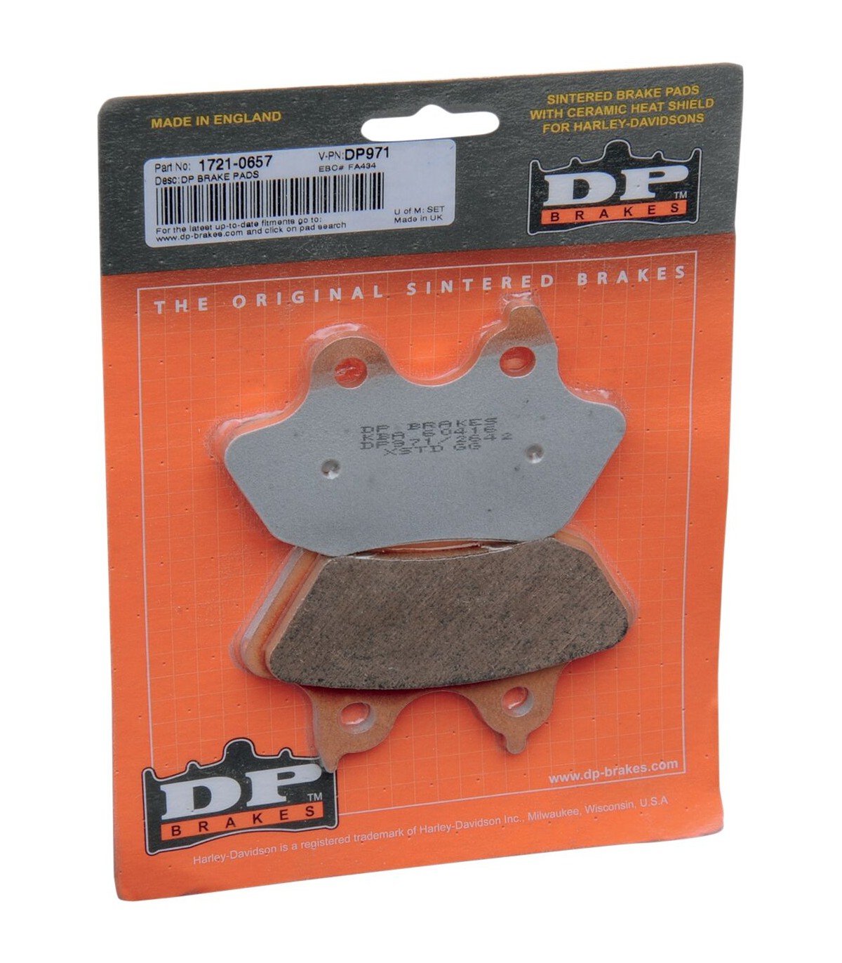 Plaquettes de frein en métal fritté pour Harley/BuellLes plaquettes ont une courte période de rodage qui vous permet de bénéficier rapidement d'une performance de freinage maximaleLe design et les matériaux garantissent un freinage intensif et une performance régulièreLe composé métallique fritté dure deux fois plus longtemps que les plaquettes organiques
