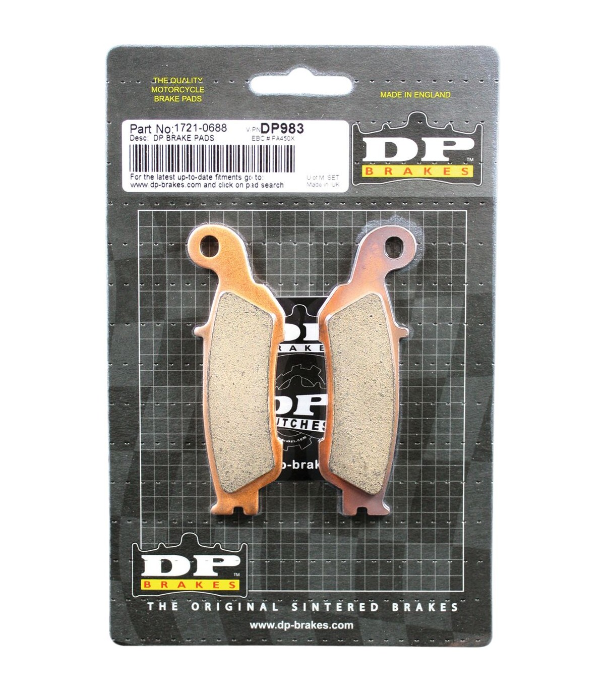 Plaquettes de frein frittées standard DPCourte période de rodage qui vous permet de bénéficier rapidement d'une performance de freinage maximaleLe design et les matériaux garantissent un freinage intensif et une performance régulièreLe matériau céramique à base d'oxyde d'aluminium gris sur le dos de la plaquette protège le piston d'étrier de la chaleurExcellente force de freinage initiale et sensation dans des conditions humides et sèchesLes composants en métal fritté sont plus résistants que les plaquettes conventionnelles organiques ou en aramideCoefficient de friction GGSilencieux et non violent pour la plupart des disques de frein ; aucune poussière de frein ni perte de capacité de freinage