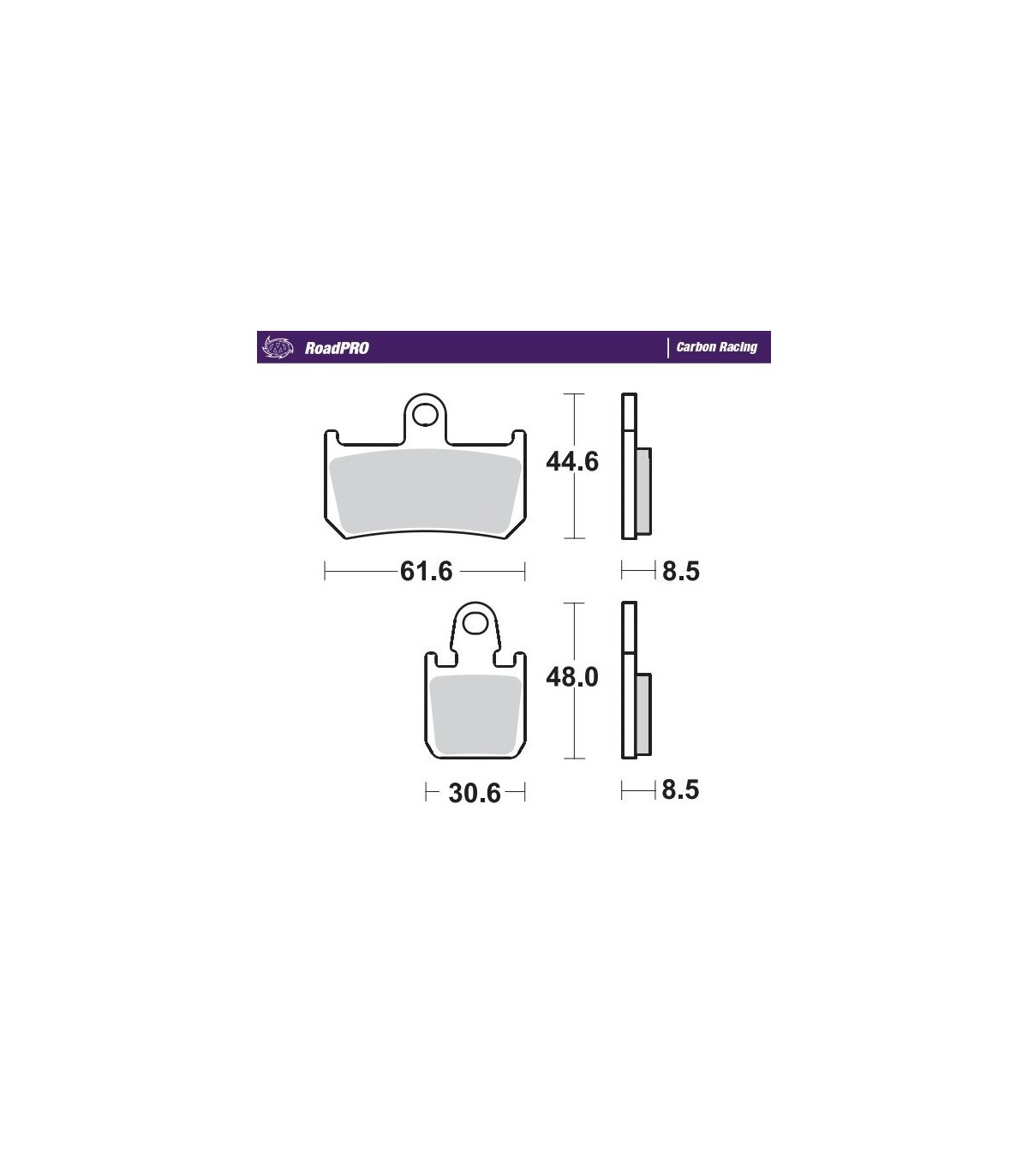 Plaquettes de frein pour course en carbone RoadPROComposé à base de carbone ayant pour courses Superstock, Supersport et SuperbikeLa technologie NRS qui apporte un point de pression constant sur toute la durée de vie de la plaquette de frein