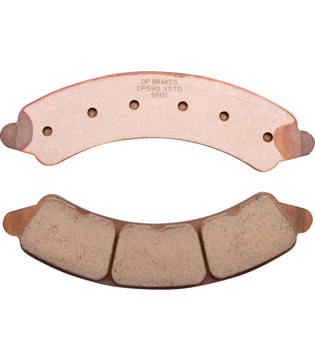Plaquettes de frein en métal fritté pour quad/SSVLes plaquettes de frein DP Brakes sont conçues avec des composants en métal fritté pour offrir à votre quad une performance high-tech dans toutes les conditionsLes plaquettes ont une courte période de rodage qui vous permet de bénéficier rapidement d'une performance maximaleLe design et les matériaux DP Brakes garantissent un freinage intensif et une performance régulièreLes composants en métal fritté sont plus résistants que les plaquettes conventionnelles organiques ou en fibre aramideUtiliser les rotors DP Brakes avec les plaquettes de freins DP Brakes pour une performance de freinage optimaleExcellent coefficient de friction GG et fabrication avec des matériaux en métal fritté DP Brakes éprouvésLes matériaux en céramique à base d'oxydes d'aluminium gris sur l'arrière de la plaque de maintien protègent le piston de l'étrier et le liquide de la chaleur dans les conditions extrêmes pour une performance constanteLe composant de la plaquette fournit une performance égale dans des conditions humides ou sèchesPlaquette de rechange idéale lorsque la durabilité est le principal critèreJeu de plaquettes attractives