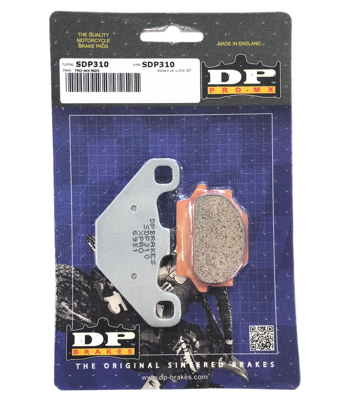 Plaquettes de frein frittées SDP Pro-MXOffrez à votre moto d'excellentes performances de freinage grâce aux plaquettes de frein DP BrakesLes plaquettes ont une courte période de rodage qui vous permet de bénéficier rapidement d'une performance de freinage maximaleLe design et les matériaux DP Brakes garantissent un freinage intensif et une performance régulièreLes plaquettes ont une longue durée de vie. Les composants en métal fritté sont plus résistants que les plaquettes conventionnelles organiques ou en aramidePlaquettes en métal fritté éprouvé de DP BrakesLes matériaux en céramique à base d'oxyde d'aluminium gris sur le dos de la plaquette protègent le piston d'étrier et le liquide de la chaleur dans les conditions extrêmes pour des performances constantesExcellente force de freinage initiale et sensation dans des conditions humides et sèchesCoefficient de friction GG
