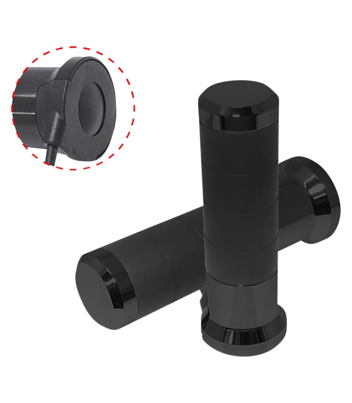 Titan Heated GripIntegrated temperature level thumb switchUniversal fitment designed to fit 7/8” + 1” handlebars5 temperature levels to choose from5 color LED indicator to display which temperature setting is currently in useLow battery cut off protectionInternal memory that allows the grips to stay at previous warmth levelMade of soft to the touch rubber compositeAvailable anodized black or chromea