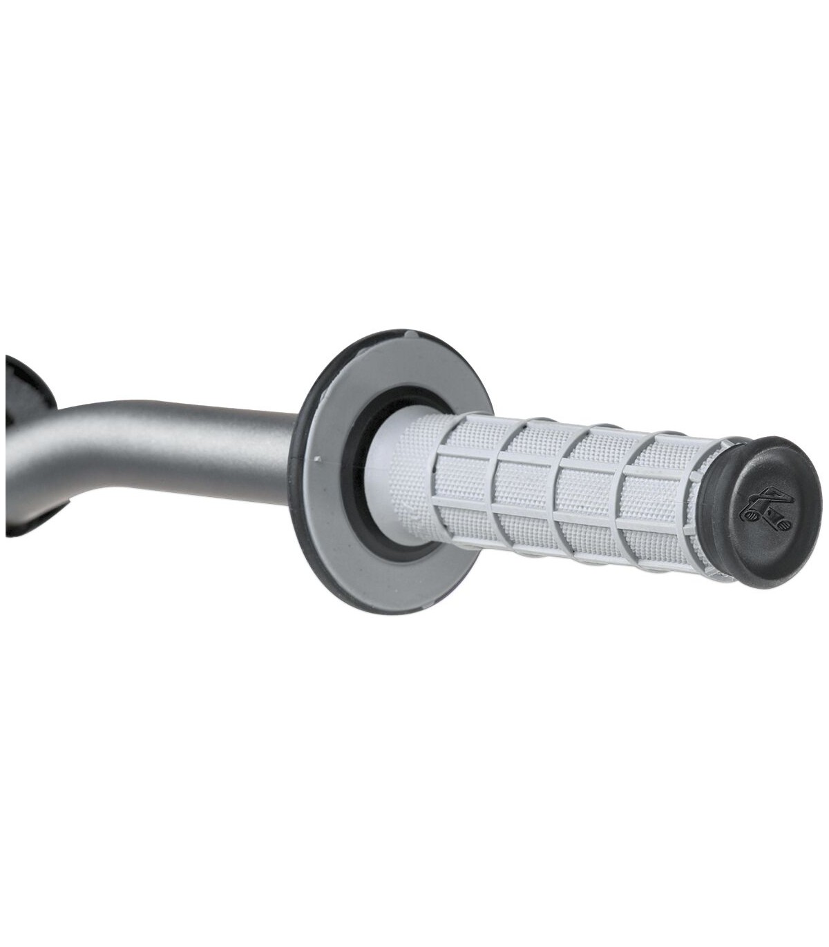 Poignées à double composé pour tout-terrainLes poignées à double composé de Renthal associent la durabilité des poignées à composé ferme de Renthal aux sensations et qualités d’absorption fournies par la gamme de poignées Renthal à composé plus souple.Le composé ferme est utilisé pour la bride, la couche intérieure et l’extrémité extérieure de la poignée, pour une durabilité maximale ; des composés plus souples sont utilisés pour le diamètre externe de la poignée, qui est en contact direct avec la paumPour usage avec un tube d'accélérateurPour guidons de 7/8" ; 4-1/2" de long