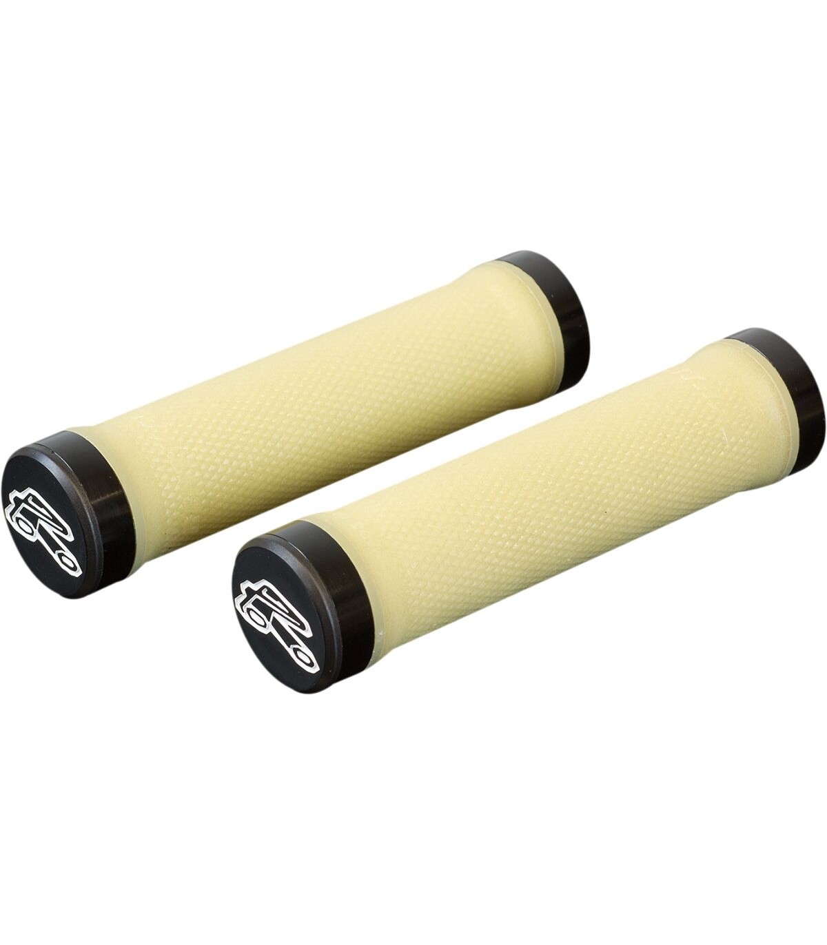 Poignées lock-on en aramideLe matériau de base comporte des millions de particules de résine aramide Kevlar® à l’alignement aléatoire.La résine aramide, exposée à chaque utilisation de la poignée, résiste à l’usure tout en gardant pour le pilote sa douceur et ses propriétés antidérapantesCorps de poignée et bagues de blocage rentrés afin que la poignée soit plus solideBagues usinées CNC en aluminium 6082 T6Motif sculpté en diamantProfilé lisse de l’embout au corps, pour un confort optimalAvec embouts clipsables