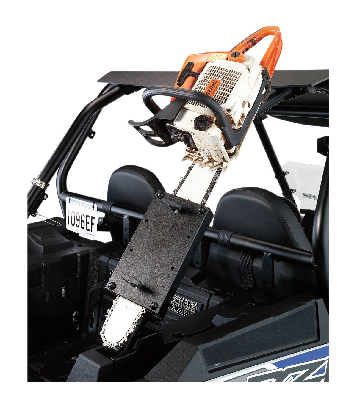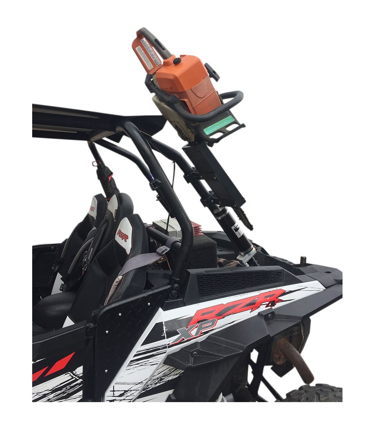Support pour tronçonneuse fixée sur arceauIdéal pour SSV ainsi que pour les véhicules de sport tels que RZR, YXZ, CanAm et pratiquement tous les véhicules tout-terrain avec arceauxOffre le meilleur support et une excellente sécurité pour votre tronçonneuse lorsque vous souhaitez pouvoir la fixer horizontalement ou verticalement sur les arceaux ou le pare-chocsLes clamps sont adaptés aux tubes ou tuyaux de 38,10 mm à 44,45 mm de diamètre.Tronçonneuse non fournie.