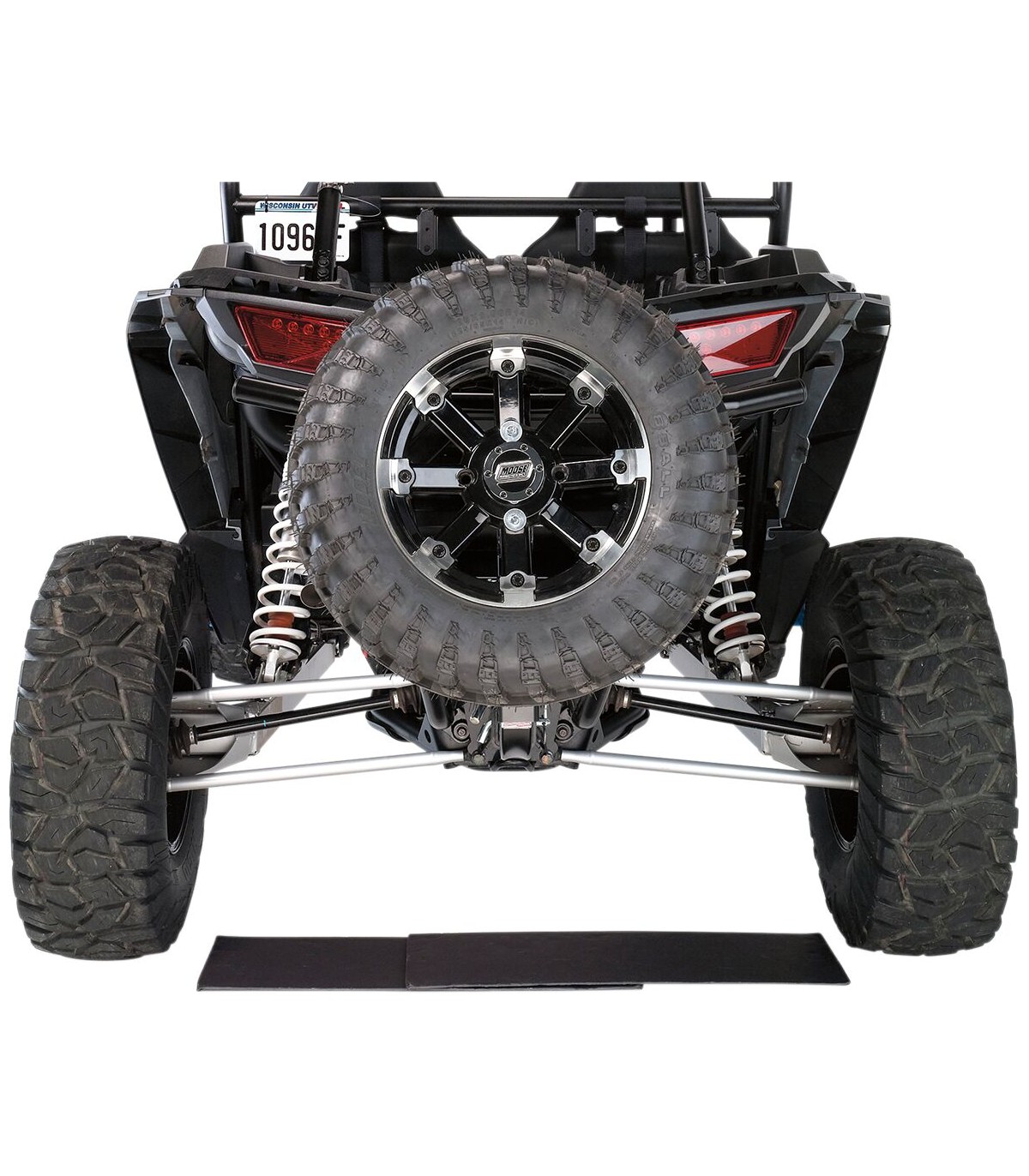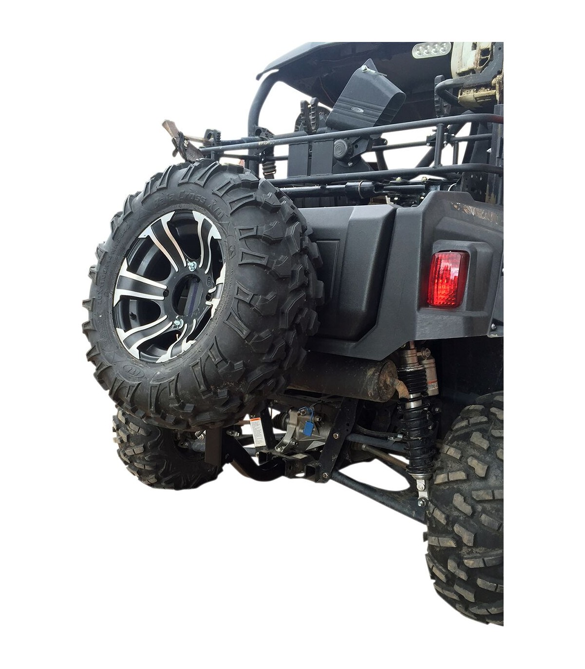 Fixation pour roue de secours montée sur barre d’attelageLe design tout-terrain unique d’un insert inférieur incurvé avec une hauteur entièrement réglable pour un maximum de confort lors du transport d’une roue de secours sur un UTV, un camion ou une voitureCompatible avec tous les receveurs de 2” y compris ceux des quads et des SSVLa hauteur du bras vertical sur lequel se fixe la roue de secours peut être ajustée ou vous pouvez simplement retirer la goupille et enlever la roue de secours pour accéder à l’arrière du véhiculeFabrication aux États-Unis.