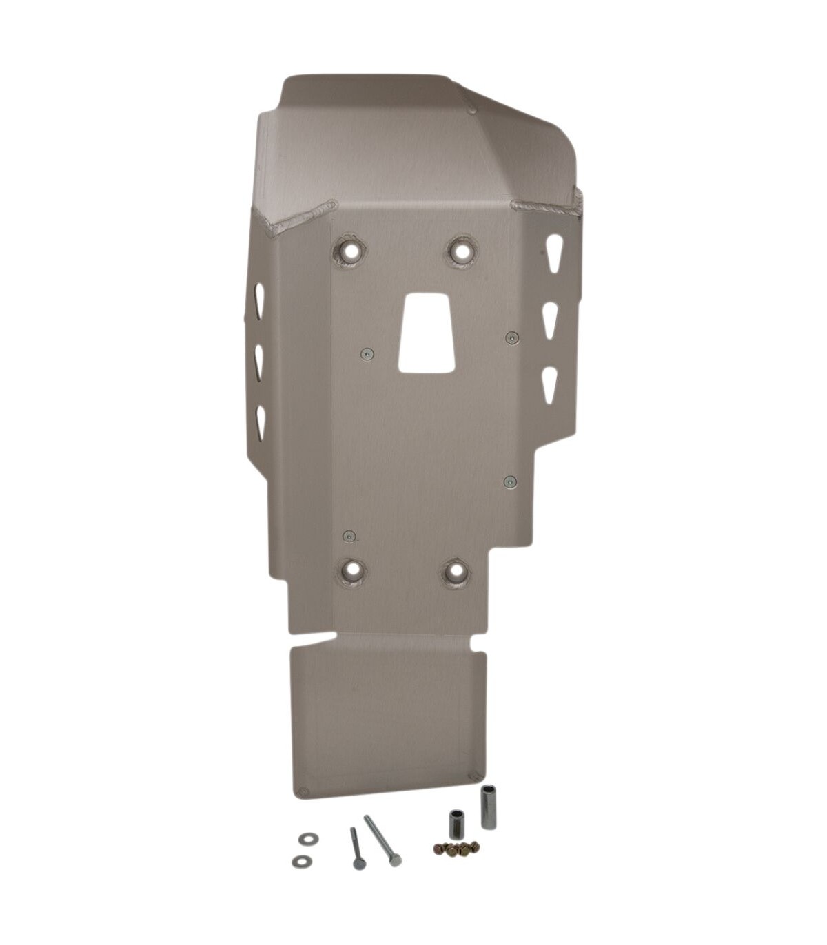 Sabot de protection en aluminiumProtègent les parties vitales du moteur et du cadre des rochers et des débrisAnodisé clair pour une protection contre la corrosion et un design séduisantSabots en aluminium 5052 H-32 de 4,76 mm (0,19 pouce)La partie inférieure souple n'est pas endommagée quand vous passez sur des troncs couchésAvec trou de vidange d'huile le cas échéantDes colliers de serrage en acier chromé traité thermiquement assurent la fixation des sabotsAvec kit de montageFabrication aux États-Unis