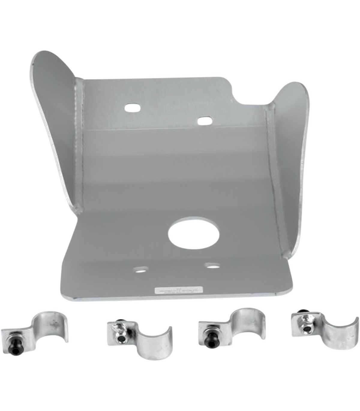 Sabot de protection en aluminiumProtègent les parties vitales du moteur et du cadre des rochers et des débrisAnodisé clair pour une protection contre la corrosion et un design séduisantSabots en aluminium 5052 H-32 de 4,76 mm (0,19 pouce)La partie inférieure souple n'est pas endommagée quand vous passez sur des troncs couchésAvec trou de vidange d'huile le cas échéantDes colliers de serrage en acier chromé traité thermiquement assurent la fixation des sabotsAvec kit de montageFabrication aux États-Unis