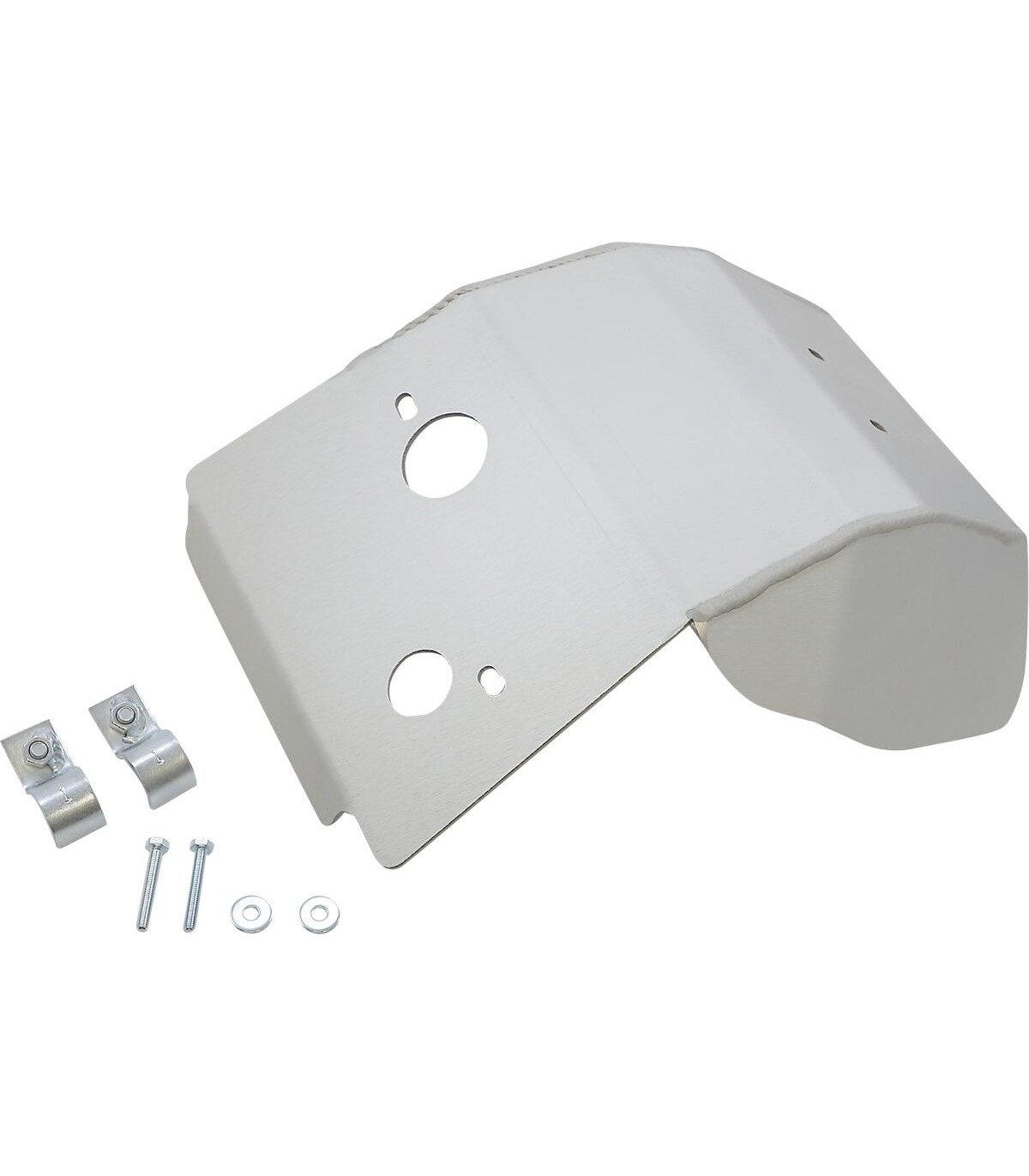 Sabot de protection en aluminiumProtègent les parties vitales du moteur et du cadre des rochers et des débrisAnodisé clair pour une protection contre la corrosion et un design séduisantSabots en aluminium 5052 H-32 de 4,76 mm (0,19 pouce)La partie inférieure souple n'est pas endommagée quand vous passez sur des troncs couchésAvec trou de vidange d'huile le cas échéantDes colliers de serrage en acier chromé traité thermiquement assurent la fixation des sabotsAvec kit de montageFabrication aux États-Unis