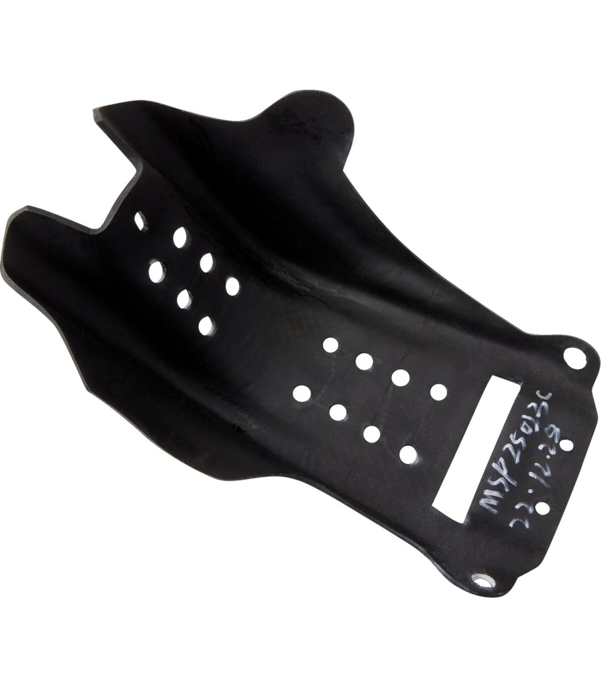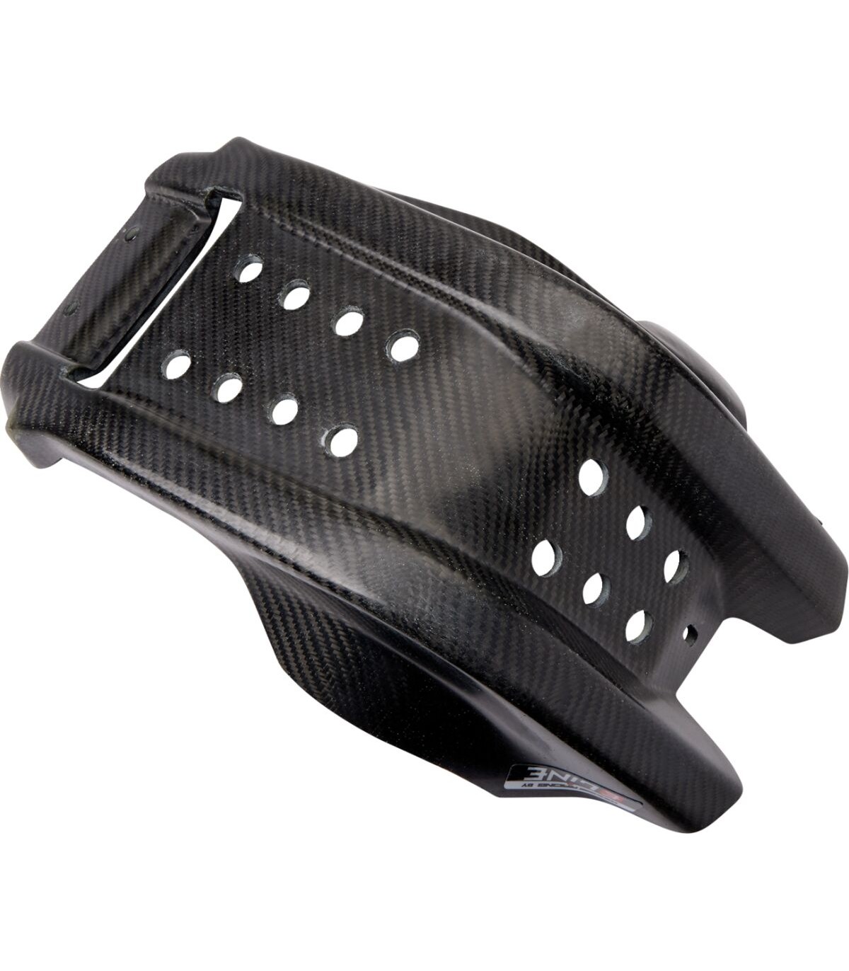 Sabot de protection en fibre de carbonePlaques épaisses en matériau composite offrant de nombreux avantages par rapport à l'aluminiumL'utilisation de matériau composite antibalistique confère une plus longue durée de vie et une meilleure résistance aux déformations que l'aluminiumLes plaques en composite sont moulées pour obtenir précisément la forme désirée, ce qui leur permet d'être mieux ajustées et de mieux vous protégerLes plaques en composite absorbent les vibrations et n'amplifient pas les sons, contrairement à l'aluminiumLorsqu'il est soumis à un choc violent, l'aluminium se déforme de façon permanente, pliant les tubes de cadre et perçant la pompe à eauLes sabots en composite, eux, se remettent facilement des chocs et sont encore comme neufs quand les sabots en aluminium ont jeté l'éponge depuis longtempsEn plus du cadre et de la partie moteur centrale, les sabots de protection protègent les couvercles latéraux du moteur et la pompe à eauAvec partie avant surélevée pour éviter que la boue ne s'accumule sur le moteurAvec kit de montageFabrication aux États-Unis