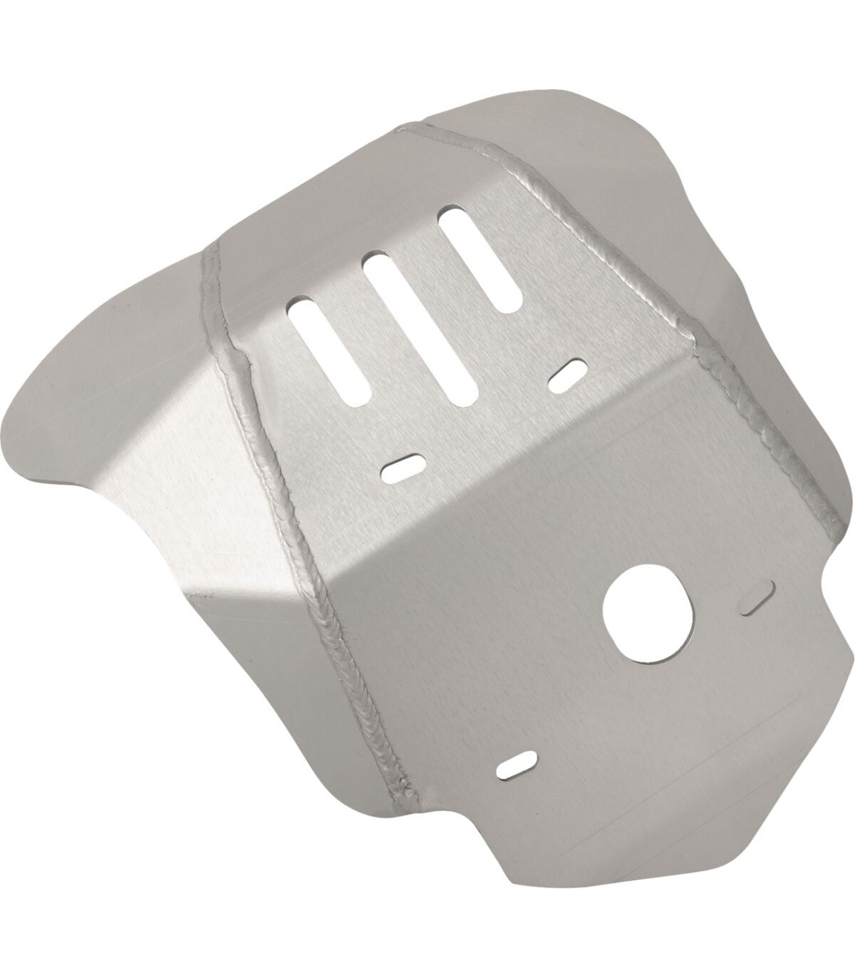Sabot de protection en aluminiumProtègent les parties vitales du moteur et du cadre des rochers et des débrisAnodisé clair pour une protection contre la corrosion et un design séduisantSabots en aluminium 5052 H-32 de 4,76 mm (0,19 pouce)La partie inférieure souple n'est pas endommagée quand vous passez sur des troncs couchésAvec trou de vidange d'huile le cas échéantDes colliers de serrage en acier chromé traité thermiquement assurent la fixation des sabotsAvec kit de montageFabrication aux États-Unis