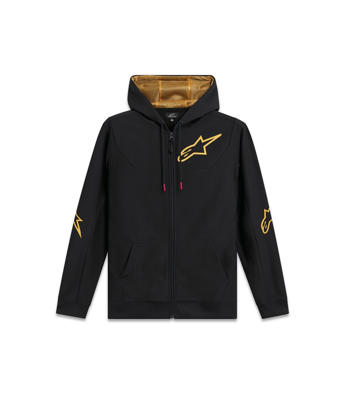 Sweat-shirt à capuche Sessions V3Polaire à capuche en polyester avec fermeture éclair devant. Sweat-shirt à capuche avec fermeture éclair sur le devant de style Alpinestars DNA.Capuche avec doublure en maille filet, cordons tech, manchettes et ourlet côtelés.Grand logo sur la poitrine, logos aux coudes, mention « Astars » sur les avant-bras et marque dans le dos.Étiquette principale à l'intérieur et étiquette de marque à l'extérieur100 % polyester.