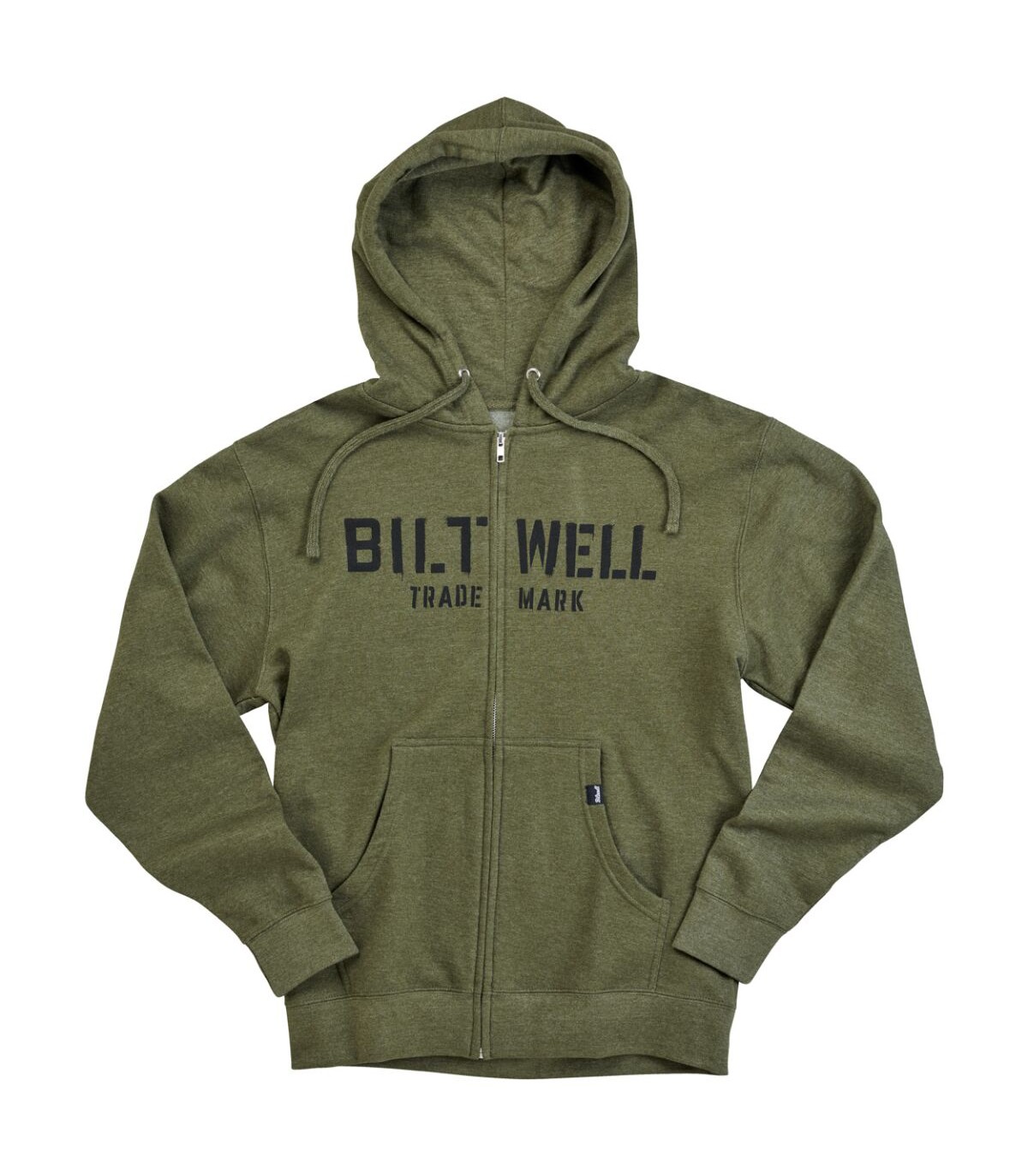 Stencil Zip HoodieSoft and midweight 8.5 ounce cotton/polyester blend fleece hoodie.Fleece lined hood and heavy gauge drawcord with metal eyelets.#5 metal kissing zipper and 1x1 ribbing at cuffs and waistband.EU: Soft and midweight 240,97 gsm cotton/polyester blend hoodie.
