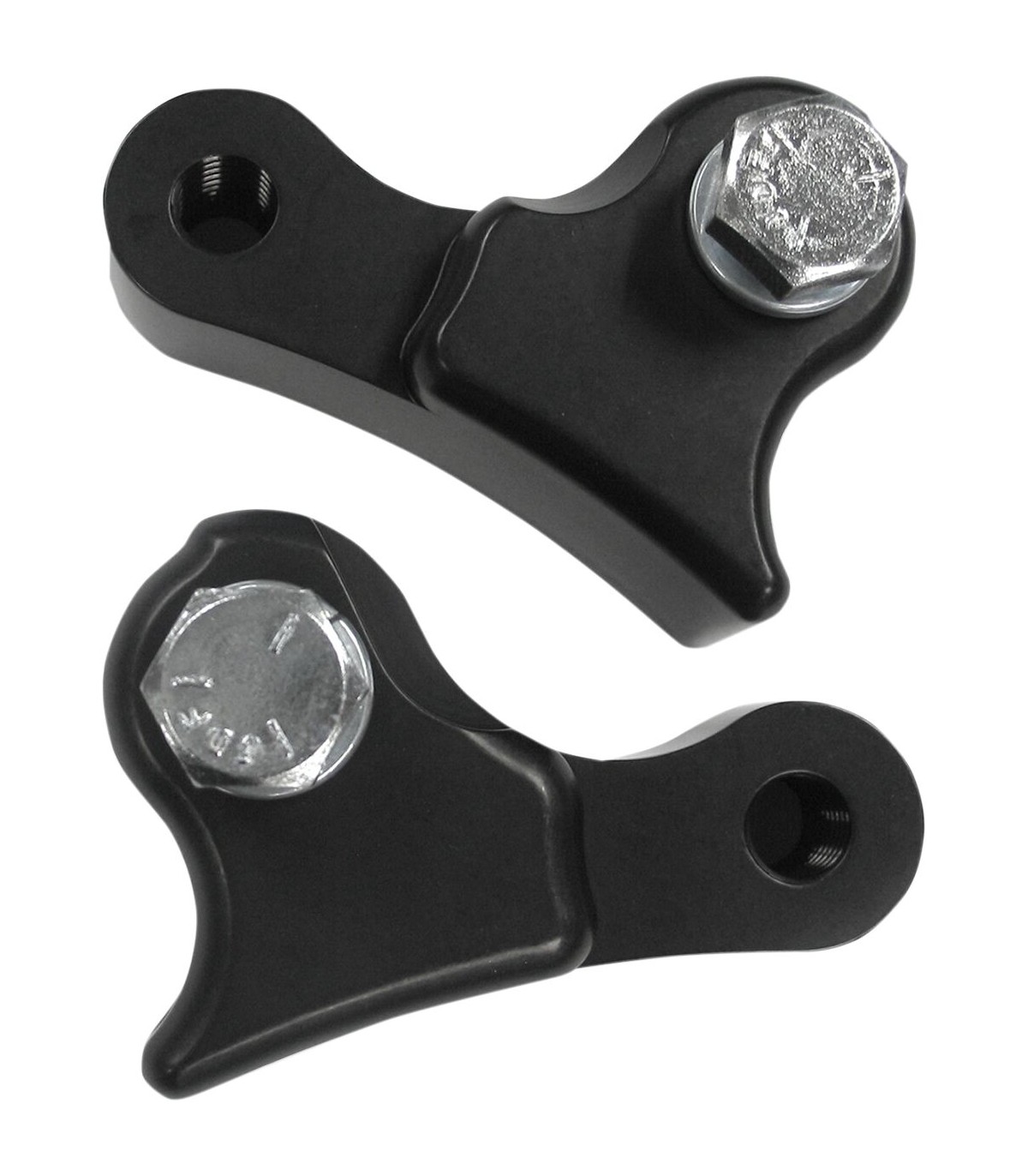 Kit de fixations pour rabaissement d’amortisseur arrièreRedressement plus facile de la moto placée sur sa béquille latérale et plus de contrôle sur la moto pour le pilote grâce au centre de gravité plus basAbaisse votre moto de 1", laissant suffisamment d'espace pour le jeu entre le pneu et le garde-boue d'origine ; conçu pour maintenir l'utilisation de la protection en caoutchouc d'origine de l'amortisseurUsiné CNC avec finition noireInstallation facile en 30 minutes environ avec des outils ordinaires, instructions et matériel de montage comprisFabrication aux États-Unis.REMARQUE : Les kits de rabaissement arrière ne peuvent pas être utilisés avec des amortisseurs « courts » ou « low-profile ».Pour modèles avec amortisseurs pneumatiques H-D Touring d’origine ou amortisseurs réglables à la main ou pneumatiques H-D Touring Premium Ride d’origine (sauf FLHX/FLHRC/FLHRS/LOW et FL Trike) (Ce kit peut être employé sur les modèles déjà abaissés avec d