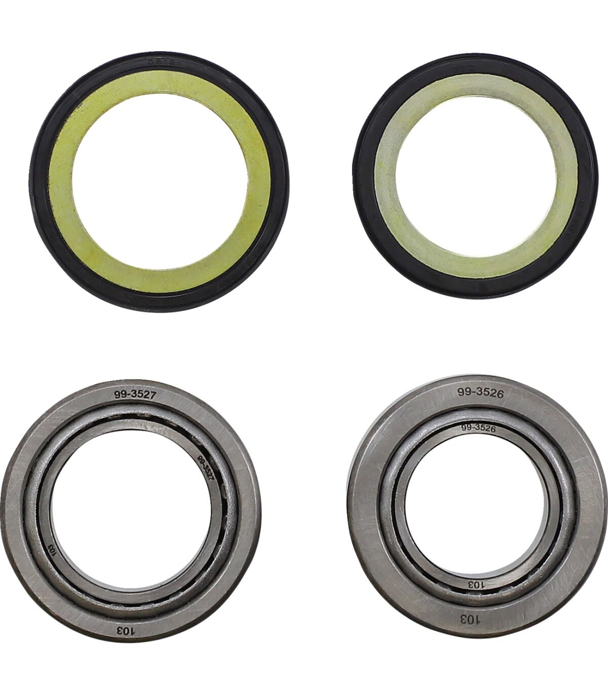Kit de roulement d'axe de colonne de directionConçus comme pièce de rechange pour améliorer les roulements à bille d'origine en les remplaçant par des roulements coniques ou comme pièce de rechange haute qualité si votre quad est doté d'origine de roulements coniquesLes roulements coniques réduisent la maintenance nécessaire et se distinguent par une usure moindre, un fonctionnement plus souple et une durée de vie plus longueLes kits comprennent les cuvettes de roulement conique supérieure et inférieure, les roulements coniques et, dans la plupart des cas, les joints supérieur et inférieur