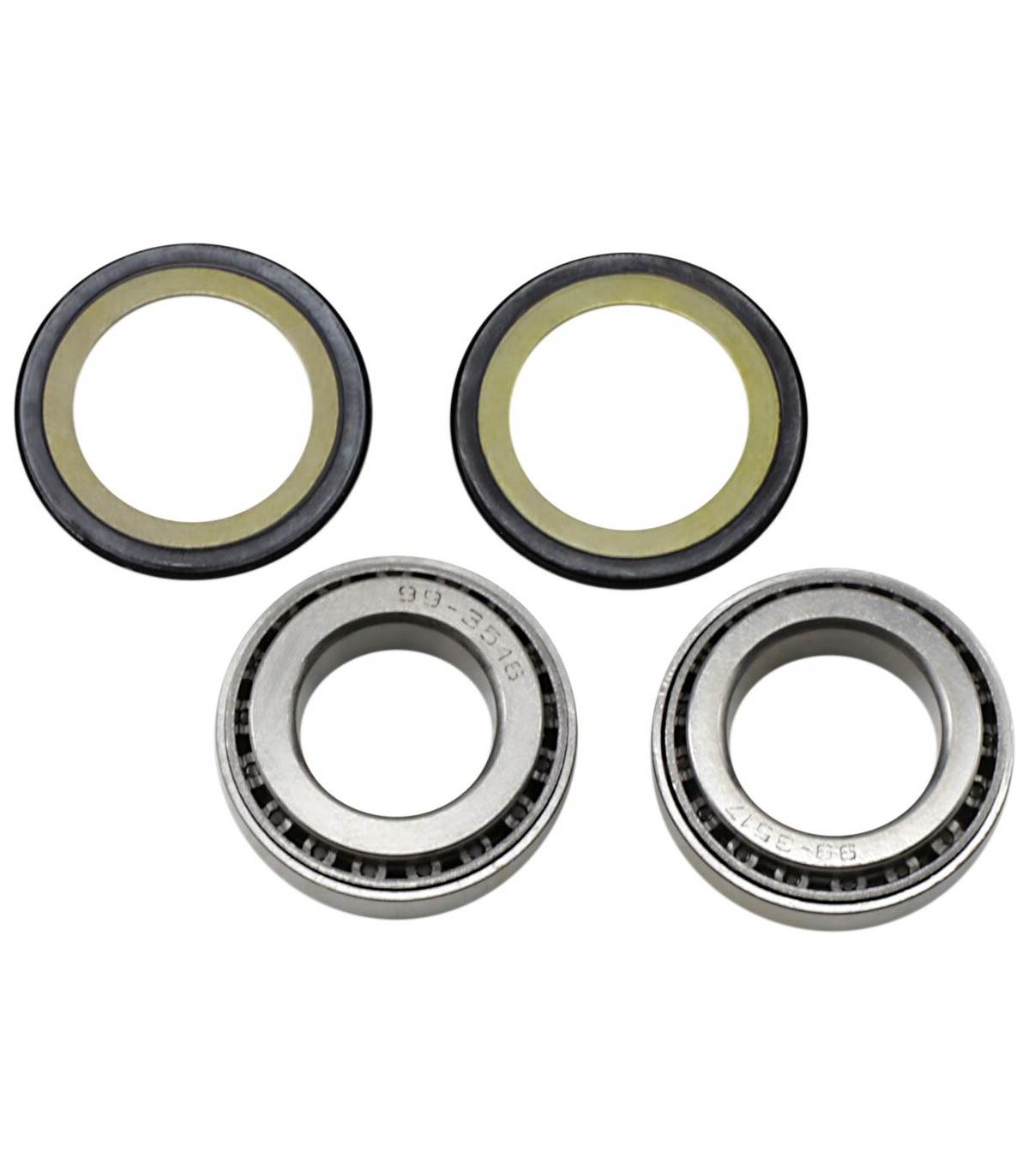 Steering Stem Tapered Roller Bearings and Seals KitDesigned as a drop-in replacement to upgrade OEM ball-type bearings to taper bearings (where ball-type bearings are used by the OEM)Designed as a replacement taper bearing seat (where taper bearings are original equipment)Kits come complete with both upper and lower taper bearing cups and cones and seals (both top and bottom seals are included in most kits)Tapered roller bearings decrease maintenance along with less wear and longer life