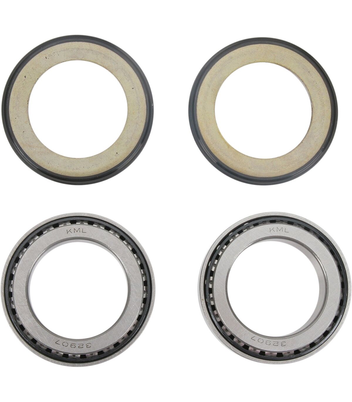 Steering Stem Tapered Roller Bearings and Seals KitDesigned as a drop-in replacement to upgrade OEM ball-type bearings to taper bearings (where ball-type bearings are used by the OEM)Designed as a replacement taper bearing seat (where taper bearings are original equipment)Kits come complete with both upper and lower taper bearing cups and cones and seals (both top and bottom seals are included in most kits)Tapered roller bearings decrease maintenance along with less wear and longer life