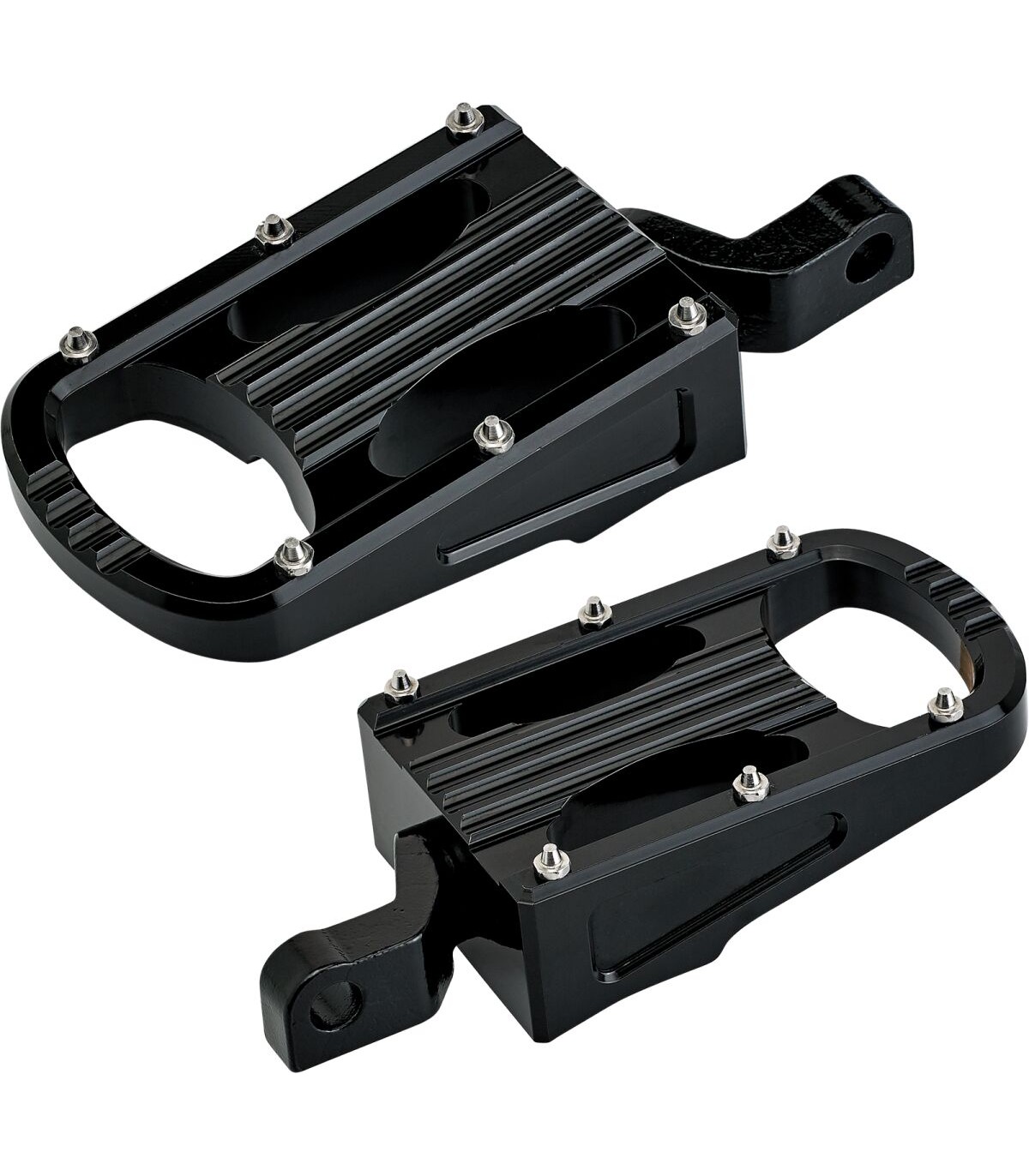 Repose-pieds XL StepRepose-pieds réglables en aluminium 6061 T-6 taillé dans la masse et usiné CNCGoupilles en chromoly 4130 moulé par cire perdue, avec 5/16-18 t.p.i. Matériel de montage avec tête AllenGoupilles remplaçables en acier inoxydable et corps à lignes arrondies en relief, pour offrir de la traction sur les bottes et les baskets
