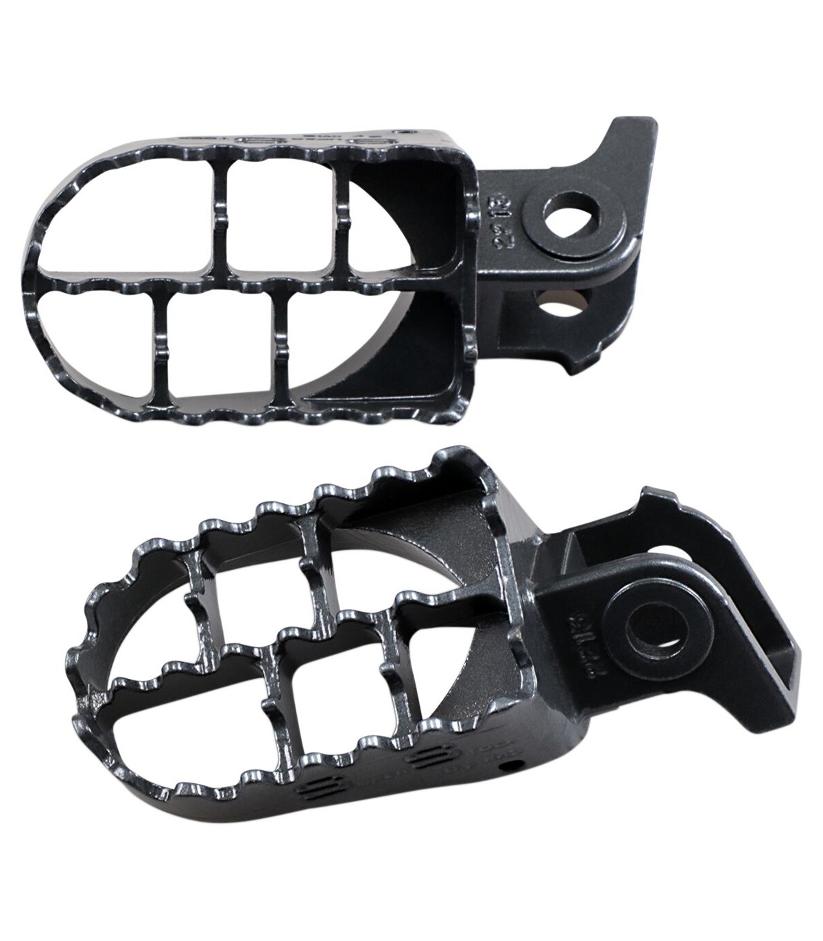 Repose-pieds Super StockPlus larges que ceux d’origine, pour le confort du piedEn acier inoxydable - pas de soudureMoletés pour un bon placement du pied, avec pointes arrondies pour plus de sécurité