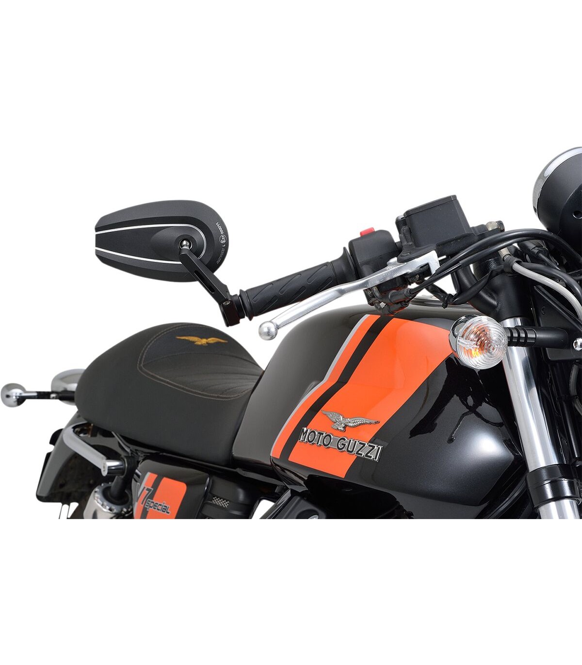 Rétroviseur en bout de guidonDiamètre intérieur de la fixation : 30 mm2 entretoises (22,2 mm et 25,4 mm) incluses pour montage directMatériau du bras de rétroviseur : aluminiumLes adaptateurs pour embout de guidon en option peuvent être utilisés.Matériau du support de miroir : aluminium avec surface usinée CNC ou ABS