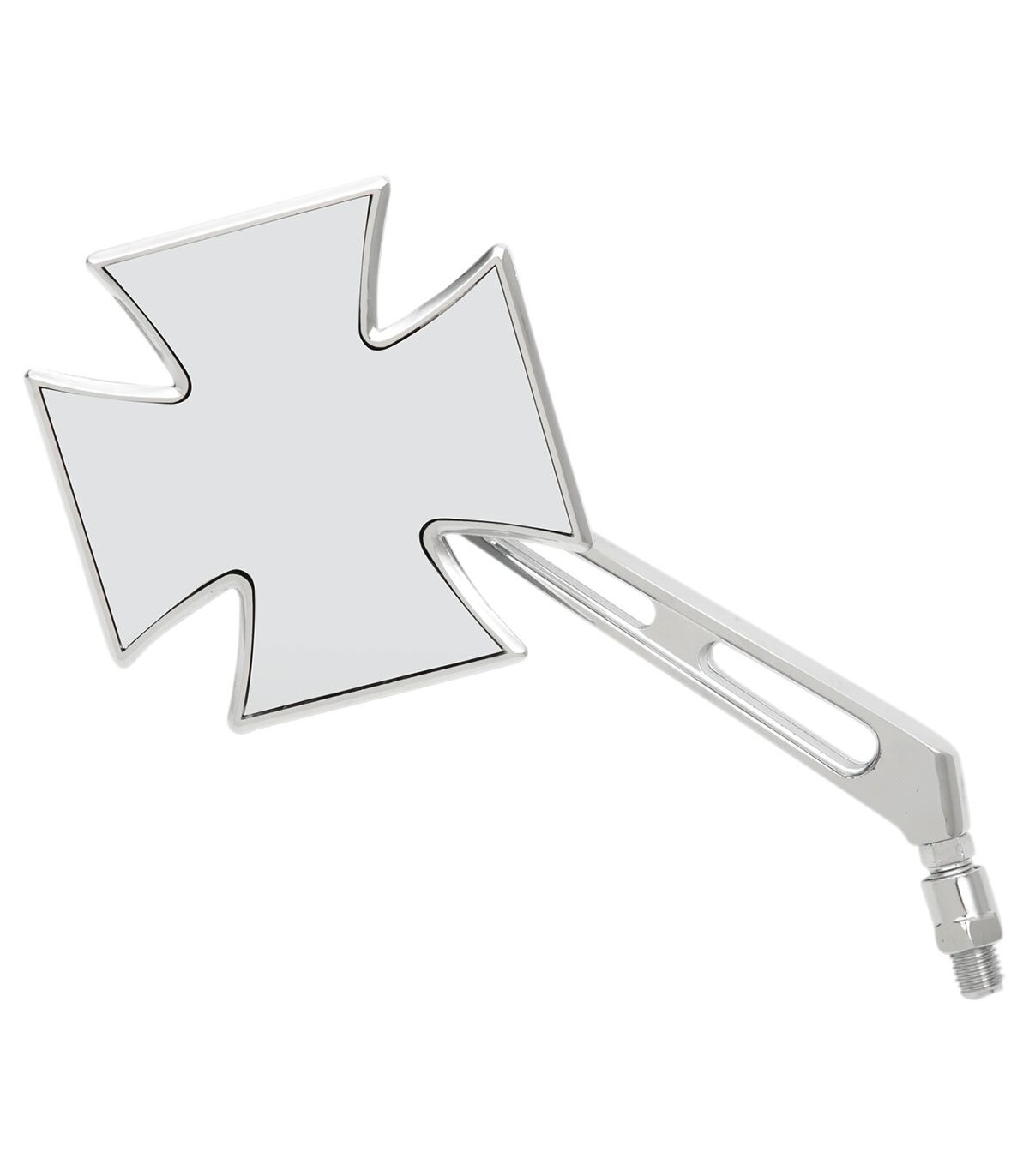 Rétroviseur croix de MalteLe style coulé chromé semble tout droit sorti d’un chopper des années 1960Nouvelle finition de miroir teintéeTige fendue 10 mm côté gauche