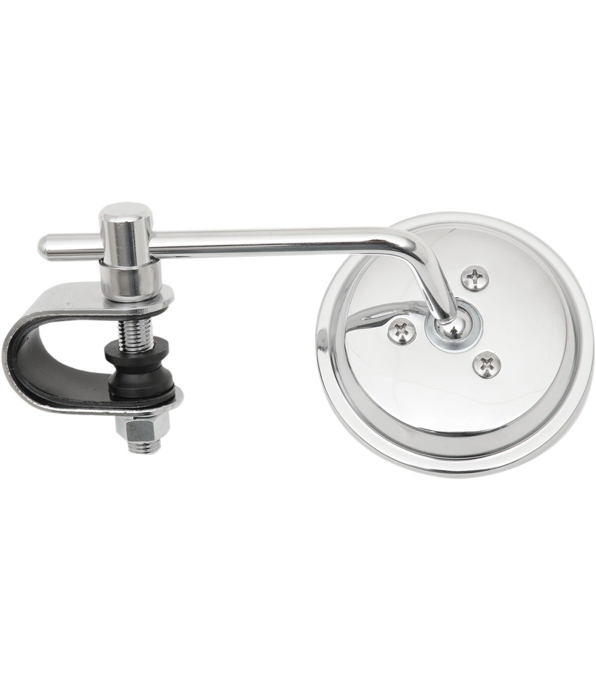 Rétroviseur 3" estampillé chroméArrière en acier estampillé chromé et miroir de 3” pour un look intemporelEntièrement ajustable pour une fixation à gauche ou à droiteWill clamp on 7/8" or 1" diameter handlebars, hardware included.