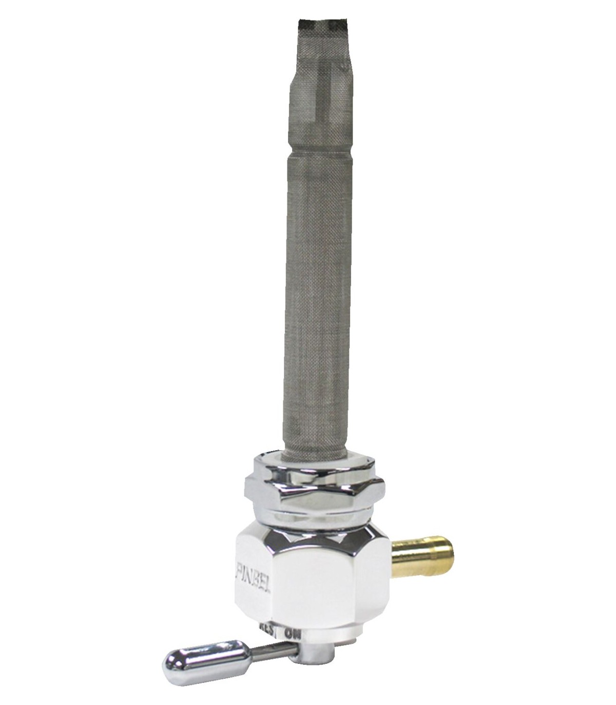 Power-Flo™ Single Outlet Reserve Fuel ValveSubstantially higher fuel flow compared to OEM or aftermarket fuel valveNecessary for adequate fuel delivery even on stock motorcycles and a must for high performanceAvailable with 22 mm external threads; has a 5/16” hose barbAdapter nut includedMade in the USAAll descriptions are made from a seated position on the motorcycle with a reference from outlet position to the On, Reserve, and Off position of the fuel valve lever.Not legal for street use in CA for all make/model year applications.