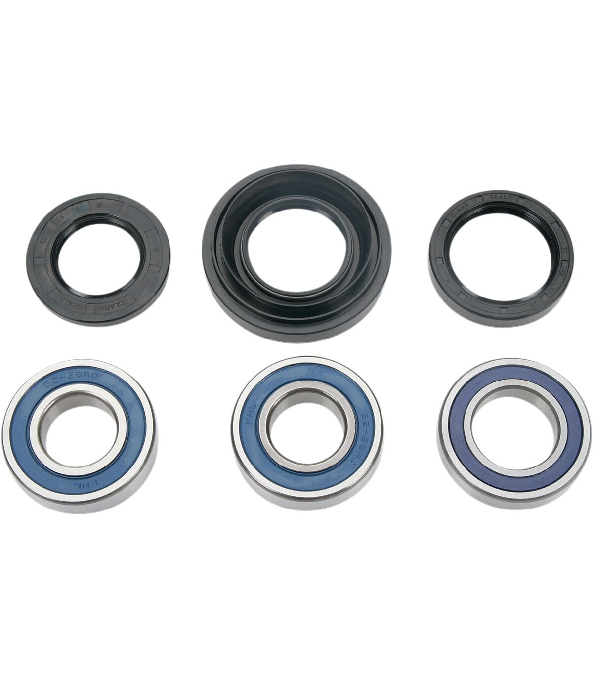 Kit de roulement de roueLes joints de roulement sont en caoutchouc à lèvre double offrant une meilleure exclusion de l'eau, de la poussière et du sable avec une meilleure rétention de la graisseLe ressort jarretière en acier garantit une pression constante sur la portée d'axe, prolongeant la durée de vie du jointLes joints spy de roue sont en élastomère nitrile TC, spécialement conçus pour empêcher l'eau, la poussière et le sable de pénétrerLes joints sont recouverts de caoutchouc à l'extérieur, créant un joint optimal au niveau du moyeuLe kit renferme l’ensemble des roulements et joints nécessaires pour remonter une roue.Roulements haute vitesse à faible friction de qualité EMQ