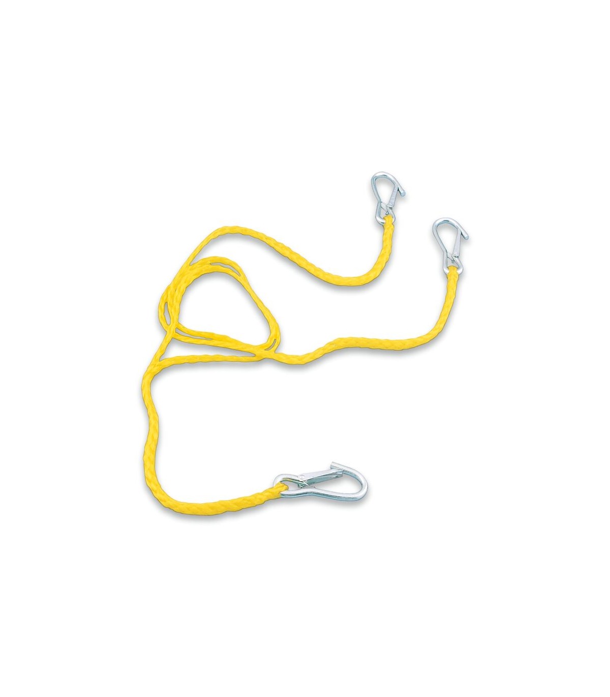 Corde de remorquage pour motoneigeCrochets de corde de remorquage renforcés à trois points sur les skis de motoneige inactifs ; l'engin remorqué suit automatiquementChaque côté mesure environ 4-1/2' de long, avec un crochet de retenue à ressort à chaque extrémitéIndispensable pour chaque boîte à outils