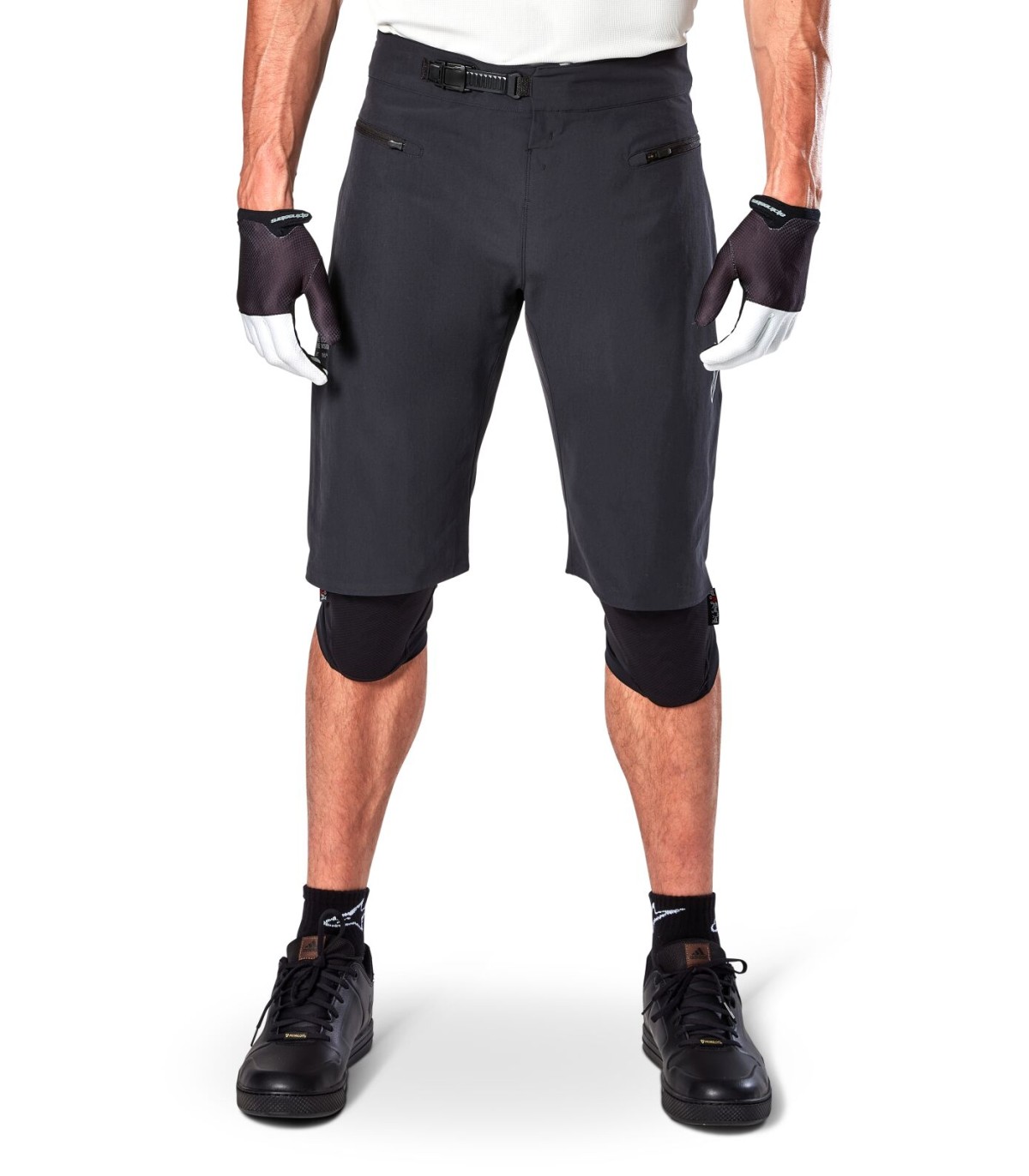 A-Aria ShortsThe 4 way-stretch A-Aria shorts offer optimal levels of flexibility and freedom of movement needed when pedalling your favourite bike.The shorts are also equipped with 3 secure pockets to carry your personal items on the trails: 2 front, mesh-lined zippered pockets, for storage which can provide additional ventilation when open. And a single hidden lateral, left-side pocket for secure storage of personal items.Recycled 4-way stretch fabric for freedom of movement and optimum mobility.Laser perforations provide airflow and optimal ventilation.Rachet closure system for a secure fit and easy waist adjustment, with elasticated, streamlined fly.Wide bonded hem.Performance fit.95% Polyamide & 5% Elastane.
