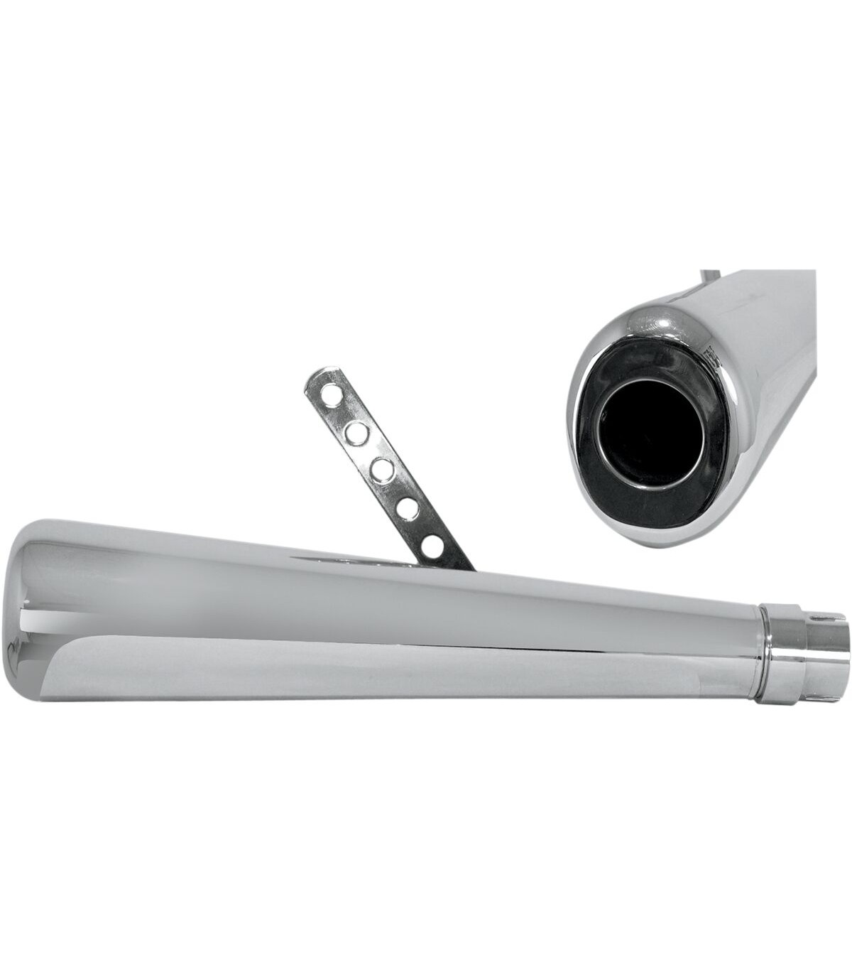 Roadhawk 50 échappement ovaleMegaphone chromé unique de forme ovale parfait pour les endroits étroitsLongueur totale de 44,5 cm, avec arrivée de 44,5 mmSection transversale mesurant 9,5 cm x 7,6 cm à son point le plus largeInclut une admission, un réducteur de silencieux trois pièces et une patte de fixation universelleCompatible côtés gauche et droit