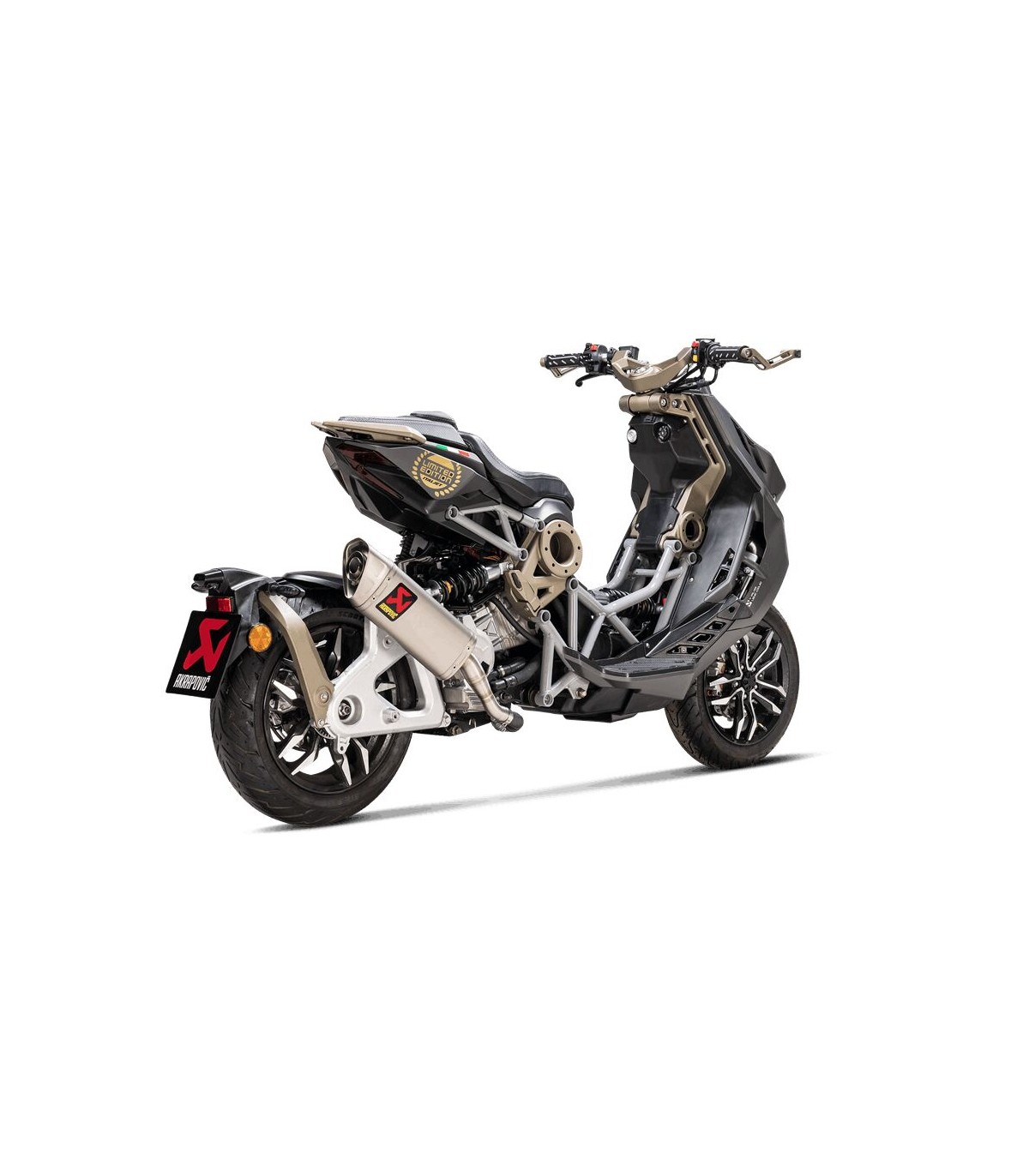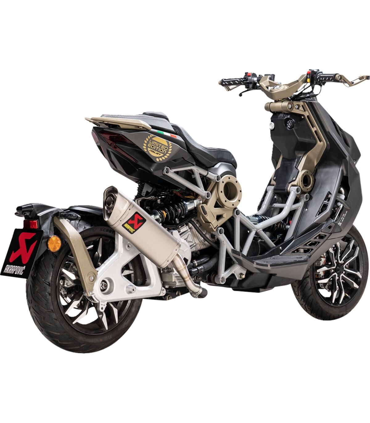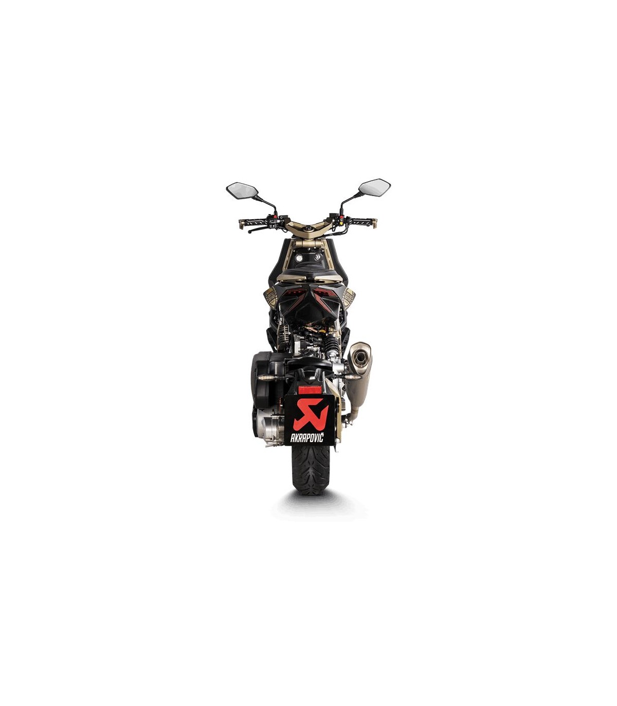Silencieux slip-on pour scooterSilencieux Slip-On Line Akrapovic pour scooters et mobylettesLes silencieux slip-on représentent l’élément à considérer en premier au moment du réglage de l’échappement.Installation facile et excellent rapport entre le prix et la performancePlus de puissance, plus de couple, moins de poids et une sonorité Akrapovic uniqueManchons de silencieux en titane ou en acier inoxydableEmbouts en fibre de carbonePour bénéficier d’une ligne d’échappement complète, il est possible de combiner avec le silencieux slip-on d’Akrapovic le collecteur en acier inoxydable optionnel (vendu à part pour un choix de modèles).Des pattes de fixation de silencieux en fibre de carbone et des sourdines sont vendues en option indépendamment pour certains modèles.Des pots catalytiques optionnels sont également disponibles séparément pour des modèles spécifiques.Pots catalytiques conçus pour être performants et vous offrir les améliorations caractéristiques de la marque Akrapovic en termes de sonorité et d’efficacitéLa structure métallique alvéolaire incorpore dans sa surface des métaux précieux tels que le palladium, le rhodium ou le platine.Ces métaux transforment le monoxyde de carbone, nocif, et les hydrocarbures non brûlés présents dans les gaz d’échappement en dioxyde de carbone non toxique et en vapeur d’eau.CE PRODUIT NE RÉPOND PAS AUX EXIGENCES DE CONFORMITÉ RELATIVES AUX ÉMISSIONS POUR UN USAGE SUR ROUTE OU AUTOROUTE.