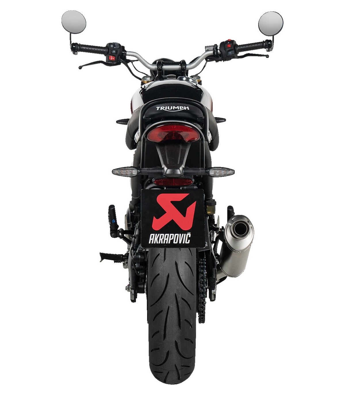 Silencieux slip-onLe style néo-rétro se base sur une conception de silencieux apparue il y a trente ans.Ce silencieux Slip-On Line (en titane) se fond merveilleusement dans les lignes de la moto.Enveloppe extérieure en titane sablé de haute qualité et tube de liaison, embout comportant des empreintes, pare-chaleur et structure interne en acier inoxydableAutocollant avec logo noir et blanc en guise de finition ; avec pare-chaleur pour éviter de brûler ou d’abîmer l’équipement du piloteAu cours de la phase de développement, la priorité a été donnée à la réponse à l’ouverture des gaz et aux performances.Accroît la puissance de 0,7 kW (1 ch) et le couple de 1,9 Nm à 6 500 tr/min, selon les tests réalisés sur banc d’essai Akrapovic le comparant à une ligne d’échappement d’usine standard montée sur un modèle TriumphLes matériaux légers permettent de réduire le poids de 39,5 % (1,3 kg) par rapport à l’échappement d’origine standard.Installation simple et rapide, sans changement de cartographie