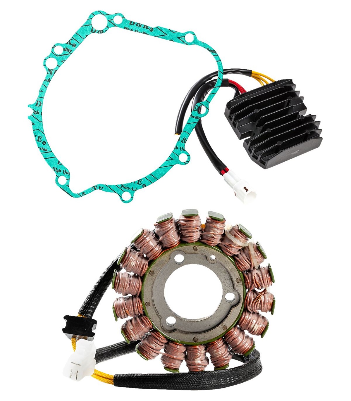 Electrical KitComplete charging kit designed to make the repair job as easy as possibleKit includes:1 stator1 rectifier regulator1 stator gasket