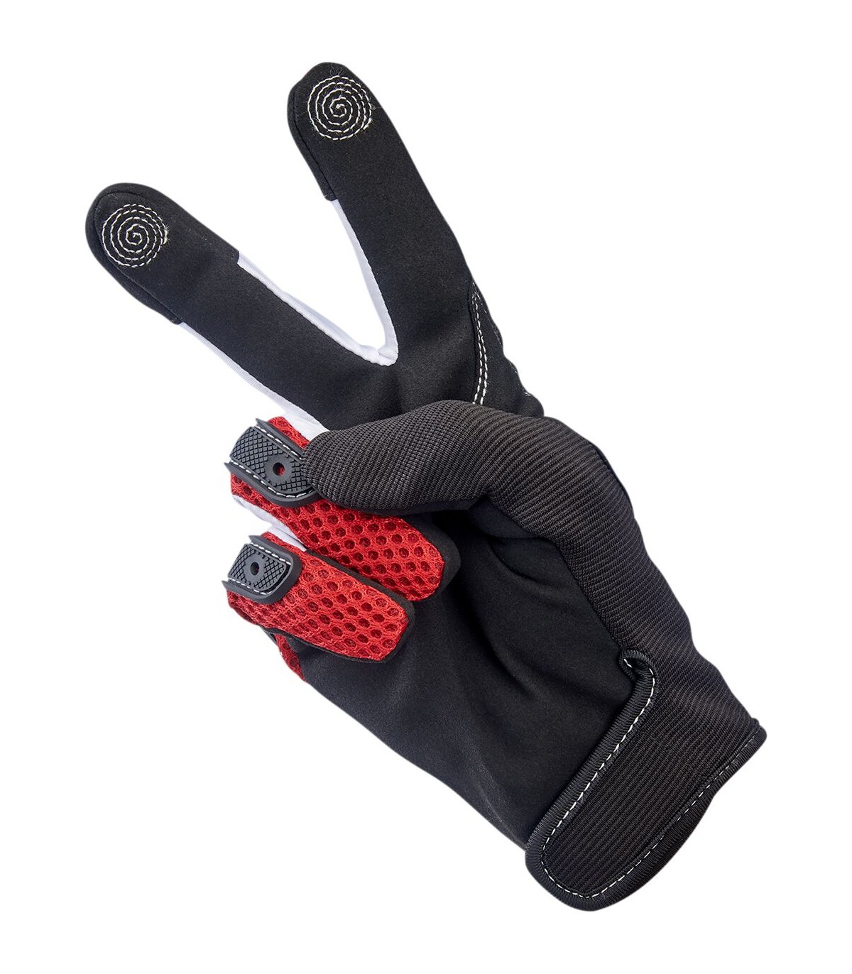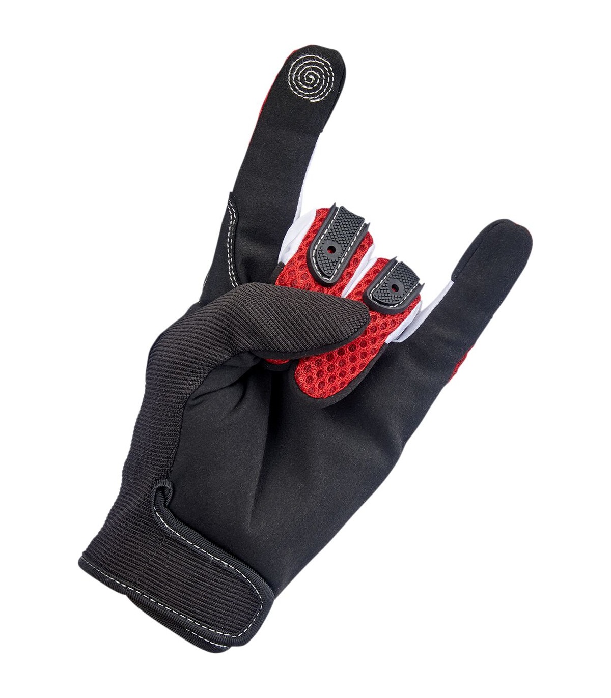 Gants AnzaLa paume en daim synthétique présente des coutures en losange pour une meilleure accroche, ainsi qu’un fil conducteur au pouce et à l’extrémité des doigts permettant l’utilisation d’un écran tactile.Pouce extensible dans les deux sens avec renfort en cuir synthétiqueProtections d’articulation en caoutchouc synthétique très flexible et logo en TPRInserts étirables en Lycra au niveau des articulations des doigts pour plus de dextéritéSimples et doubles coutures en polyester