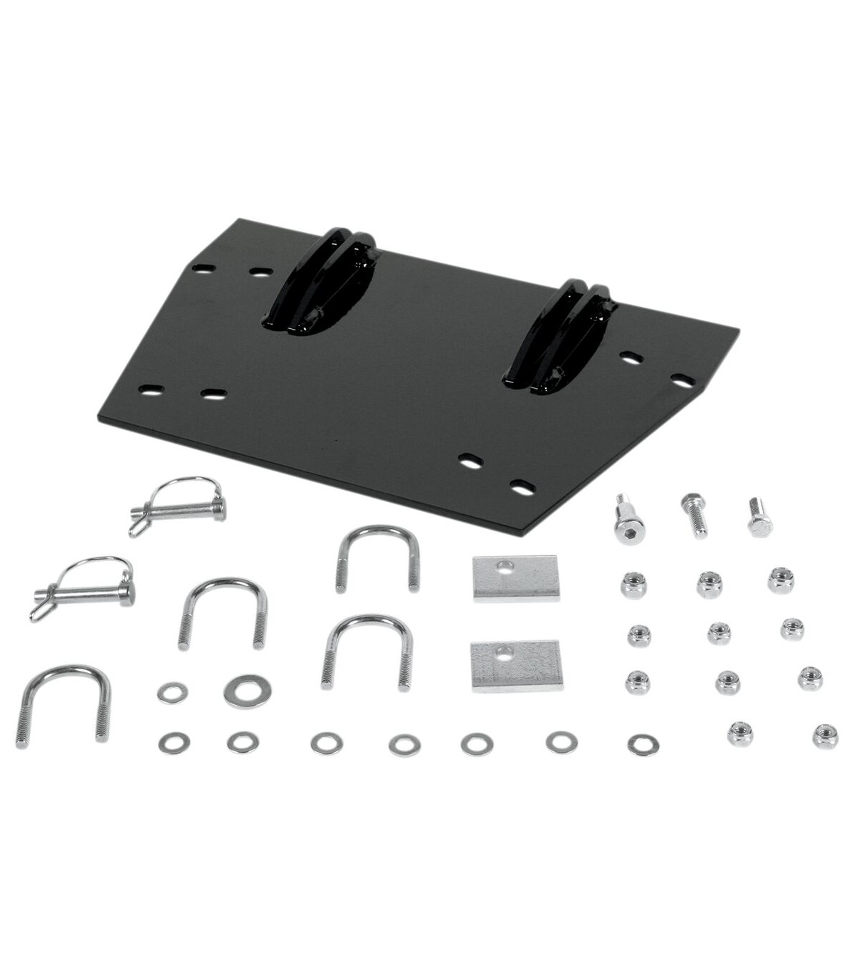 Kit de montage de lameKit de montage rapide pour une installation et un retrait facilesLa barre de poussée renforcée universelle résiste aux utilisations les plus rudesL’articulation de la lame est fabriquée en acier de 3/8" avec des points de fixations de lame de 20" pour un meilleur soutien et une meilleure résistance de la lameL’articulation ouverte élimine l’accumulation de saletés et de neige dans le point de pivotCinq positions de lame et 4 angles d’inclinaison de la lame ajustablesLe kit de fixation inférieure de pelle pour quad comprend le matériel de montage nécessaire pour monter un bras de poussée et une lame universels sur votre quad.Les kits de platine de treuil sont compatibles avec les treuils WARN, Moose et Superwinch