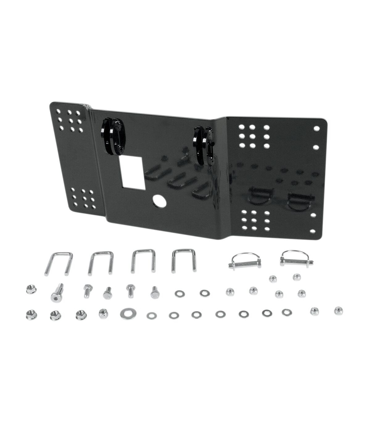 Kit de montage de lameKit de montage rapide pour une installation et un retrait facilesLa barre de poussée renforcée universelle résiste aux utilisations les plus rudesL’articulation de la lame est fabriquée en acier de 3/8" avec des points de fixations de lame de 20" pour un meilleur soutien et une meilleure résistance de la lameL’articulation ouverte élimine l’accumulation de saletés et de neige dans le point de pivotCinq positions de lame et 4 angles d’inclinaison de la lame ajustablesLe kit de fixation inférieure de pelle pour quad comprend le matériel de montage nécessaire pour monter un bras de poussée et une lame universels sur votre quad.Les kits de platine de treuil sont compatibles avec les treuils WARN, Moose et Superwinch