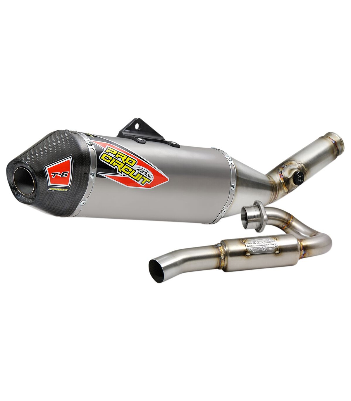 T-6 EURO EXHAUST SYSTEM SS/TI/CFT-6 EURO EXHAUST SYSTEM SS/TI/CFThe T-6 Euro System is much like our Ti-6 Pro Titanium Exhaust System except the T-6 Euro is built with a stainless steel mid pipe and head pipe to offer riders a lower cost exhaust system that is extremely durable.The T-6 Euro meets the FIM 2-Meter Max sound test, and it is used by our support factory team in the World MXGP.Meets FIM sound regulations until 2024