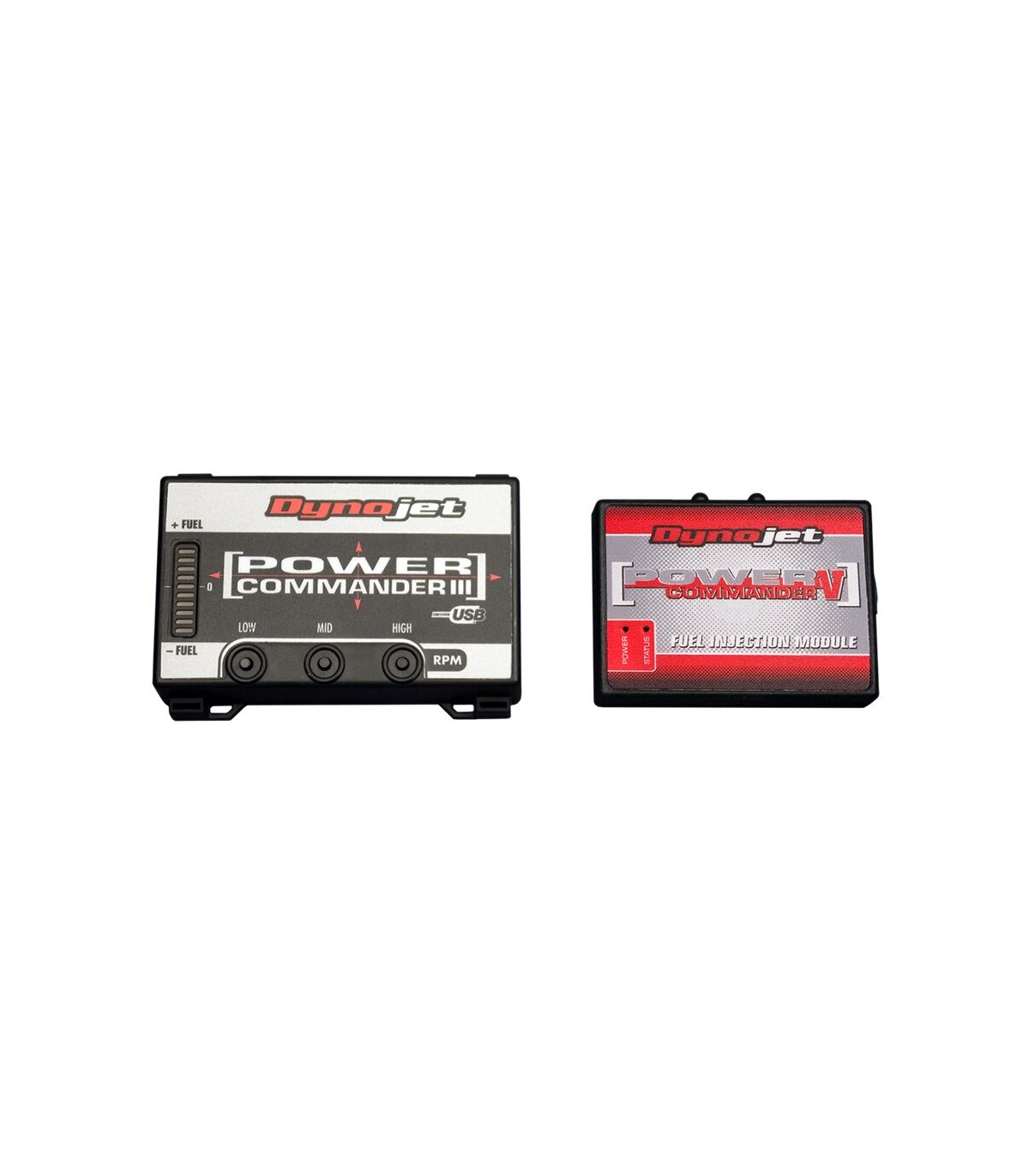Power Commander VContrôle d'injection pour chaque cylindre individuel dans un plus petit boîtierAjustement de l'essence « Préchauffage » (l'unité relève la température du moteur et permet le réglage d'essence/d'allumage en fonction de l'indication)Taille réduite par rapport au PCIII USBInstallation facileUSB alimentée par ordinateur ; un adaptateur 9 volts n'est plus nécessaireDeux choix de la cartographie possibles intégrésPossibilité d'ajouter un interrupteur unipolaire, unidirectionnel (SPST) et de basculer entre deux cartographies d'injection différentesLe capteur de vitesse/rapport engagé permet d'ajuster la courbe en fonction du rapportLe port analogique permet à l'utilisateur d'installer un capteur 0-5 voltsConception d'un tableau d'ajustement basé sur le port analogique comme le boost ou la températureLe Power Commander V est en mesure d'autoriser chaque cylindre à être réglé individuellement pour chaque rapport lorsque le port pour le branchement de rapport engagé est connectéPlus de gammes d'accord que PCIII USBLe commutateur peut être installé afin d'alterner entre deux cartographies différentes qui ont été pré-chargée sur le Power Commander V ; disponible séparémentUtilisation de la « pompe accélérateur » amélioréePour tout-terrain et quad, se reporter au catalogue approprié dans la rubrique Power Commanders MooseFabrication aux États-Unis